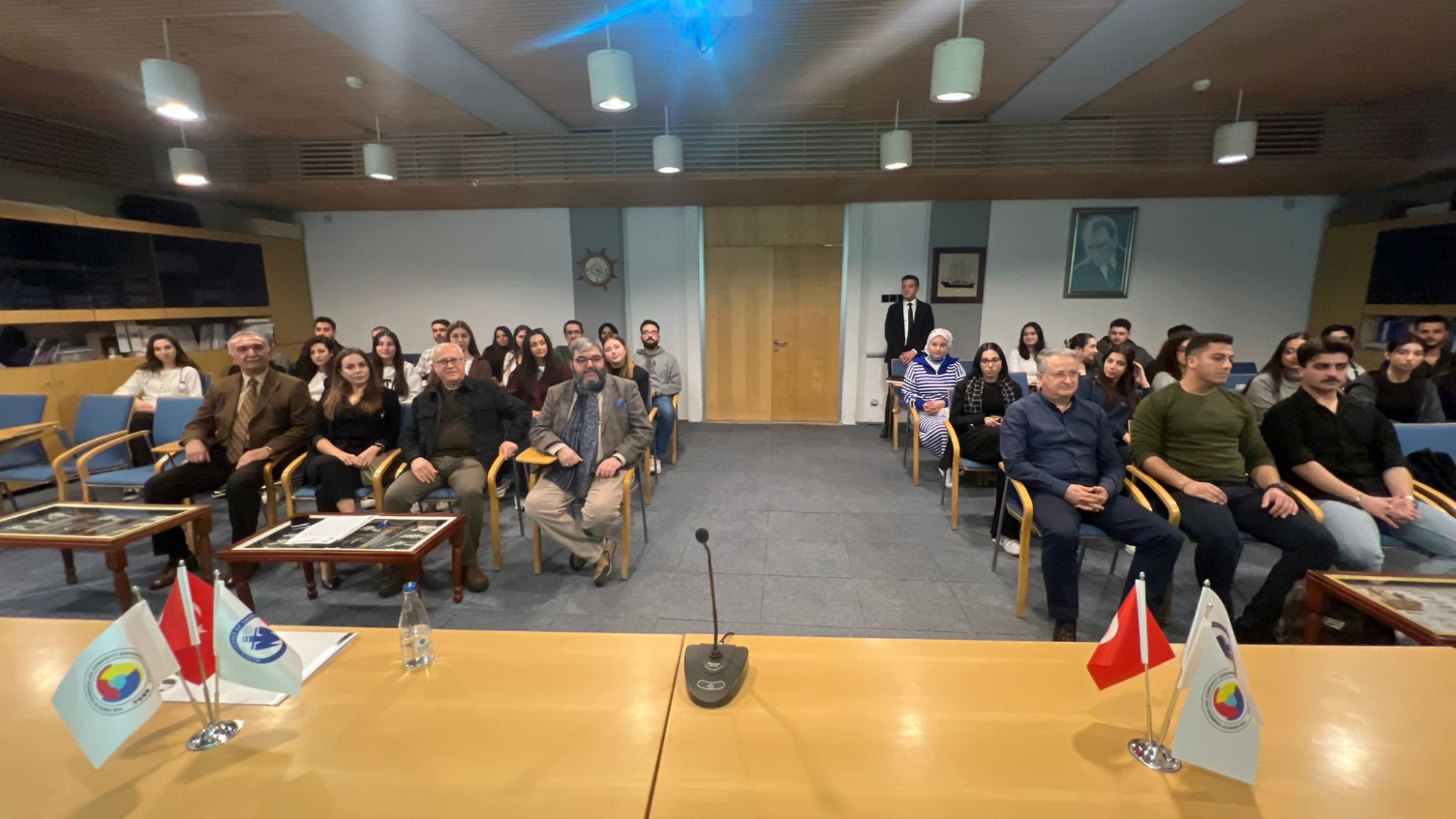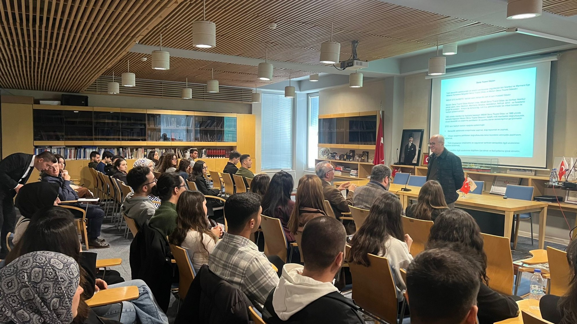 Sosyal Bilimler Meslek Yüksekokulu, Yönetim ve Organizasyon Bölümü, Lojistik Programı ile Mersin Deniz Ticaret Odası işbirliğinde, 3 Şubat 2025 Pazartesi günü, Mersin Deniz Ticaret Odası toplantı salonunda “Deniz Acenta İşletmeciliği” semineri düzenlendi. Seminer, Sosyal Bilimler Meslek Yüksekokulu Müdürü Prof. Dr. İlhan Ege, öğretim elemanları Öğr. Gör. Dr. Gül Ferhande Canpolat, Öğr. Gör. Erdem Daşcı, Mersin Deniz Ticaret Odası Genel Sekreter Yardımcısı Fuat Gedik ve çok sayıda 1. öğretim ve 2. öğretim öğrencilerinin katılımıyla 2 farklı oturum şeklinde gerçekleştirildi. Seminer, büyük bir ilgiyle izlendi.