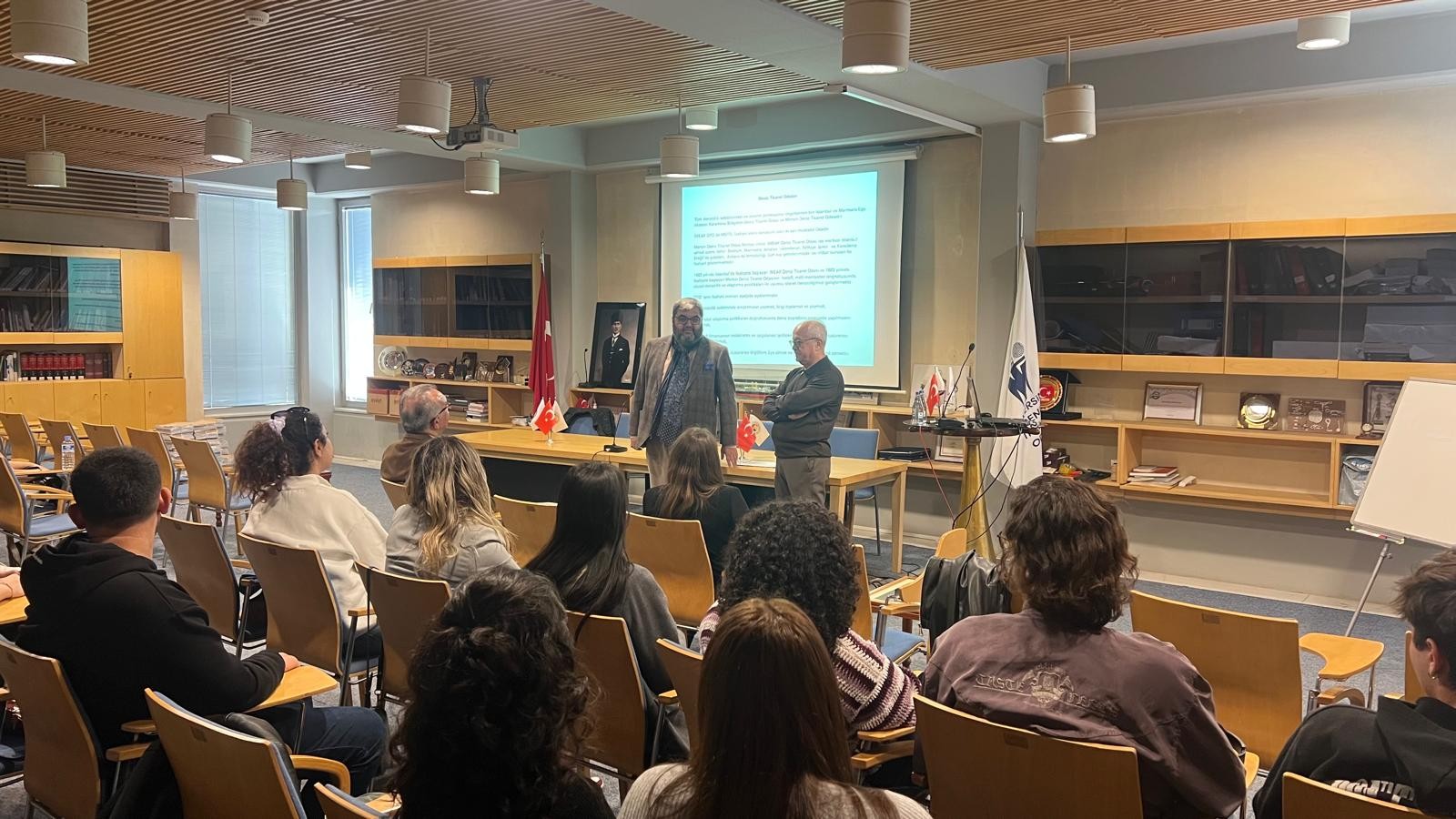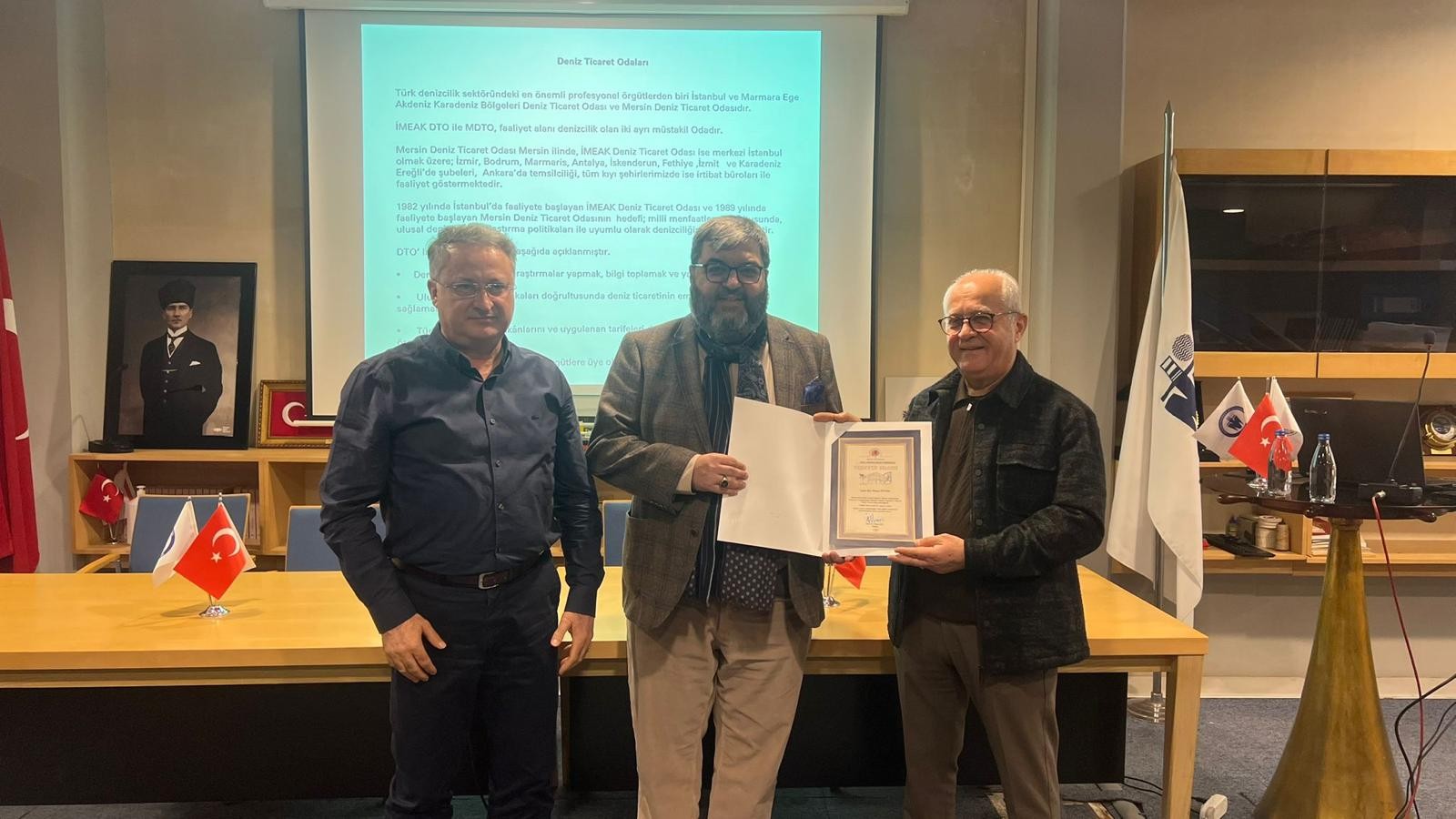 Mersin Deniz Ticaret Odası Genel Sekreteri Kaptan Mesut Öztürk, deniz acenta işletmeciliği konusundaki bilgi ve deneyimlerini paylaştı. Etkinliğin sonunda, Sosyal Bilimler Meslek Yüksekokulu Müdürü Prof. Dr. İlhan Ege bir teşekkür konuşması yaparak, seminerin düzenlenmesinde emeği geçenlere teşekkür etti. Kaptan Mesut Öztürk’ün deneyimlerini öğrencilerimizle paylaşmasından duyduğu memnuniyeti dile getirdi. Konuşmasının ardından, Prof. Dr. Ege, seminere katkıları için Mersin Deniz ve Ticaret Odası Genel Sekreteri Kpt. Mesut Öztürk’e teşekkür belgelerini takdim etti.