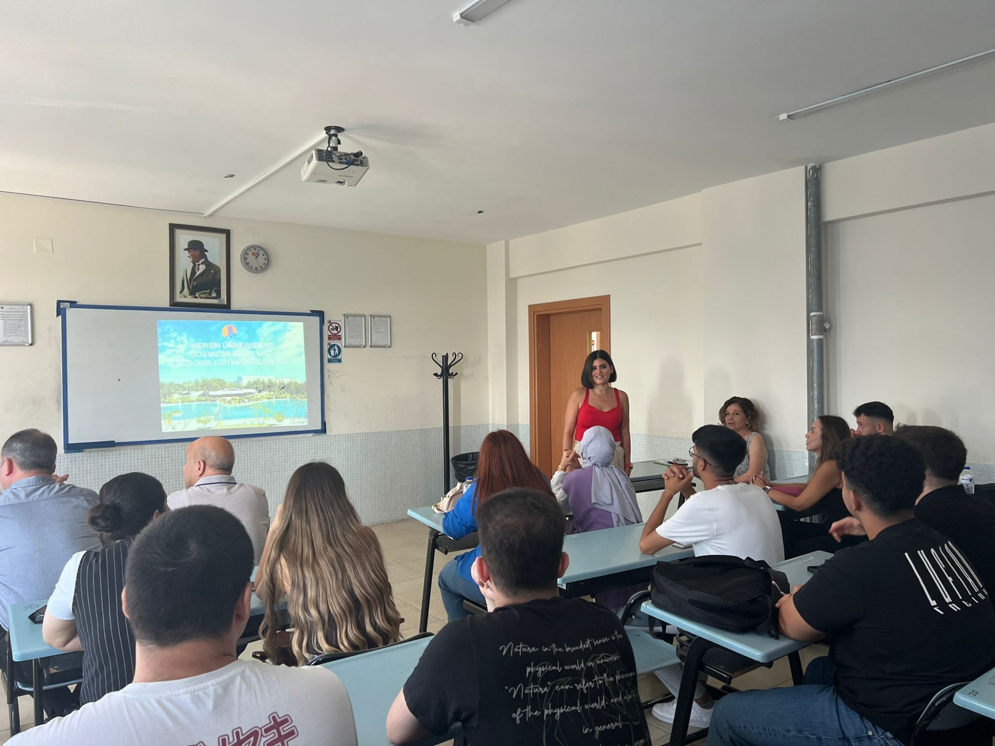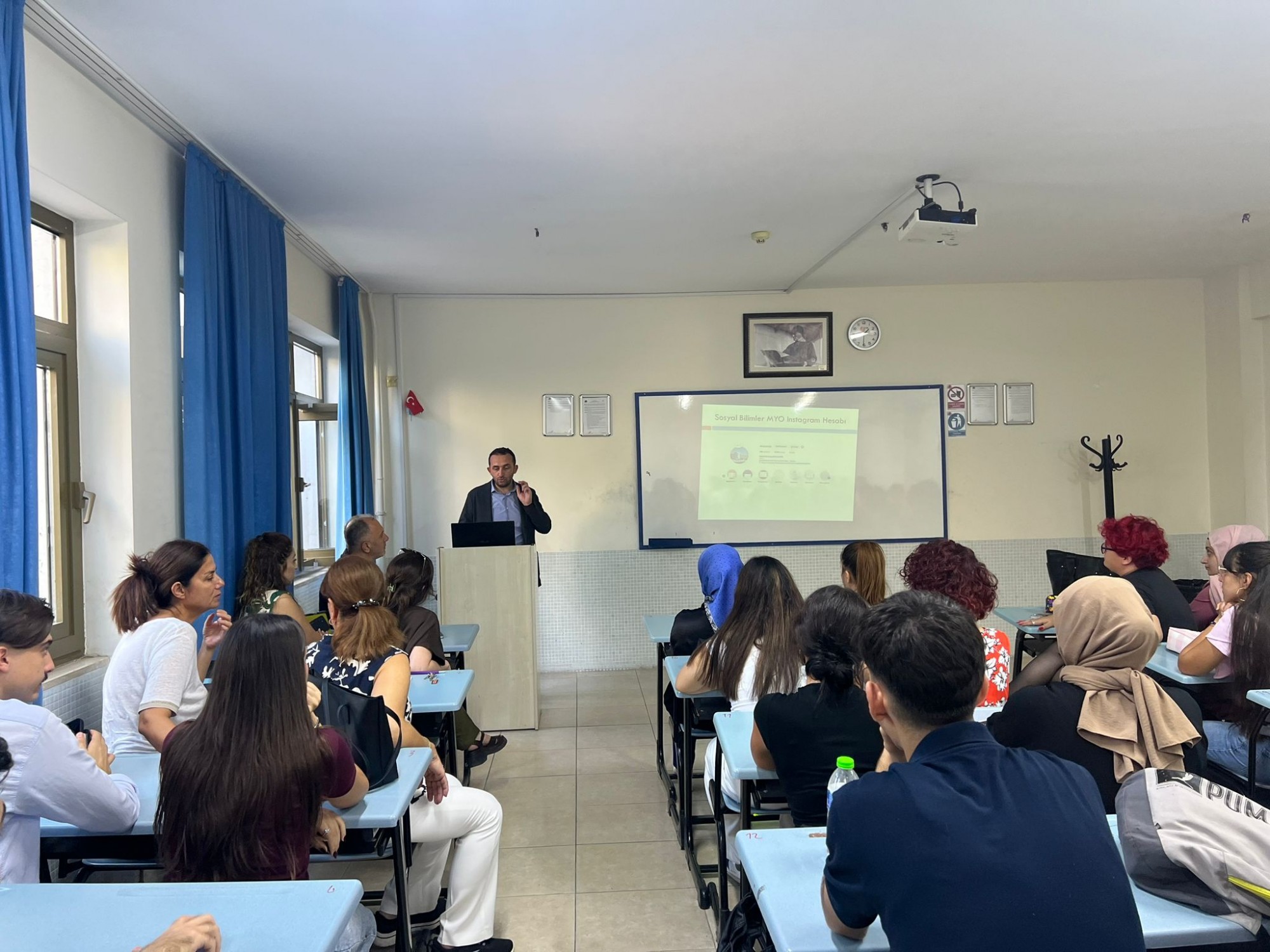 Mersin Üniversitesi Sosyal Bilimler Meslek Yüksekokulu’nda 2025-2026 eğitim-öğretim yılı için yeni kayıt yaptıran öğrencilerimize yönelik Oryantasyon Programı başladı. İlk program, 15 Eylül 2025 Pazartesi günü Ofis Teknolojileri ve Veri Yönetimi Programı ile İşletme Yönetimi Programı öğrencilerinin katılımıyla gerçekleştirildi. Program kapsamında öğrencilere yüksekokulun akademik işleyişi, idari süreçler, sosyal ve kültürel olanaklar hakkında bilgiler verildi.