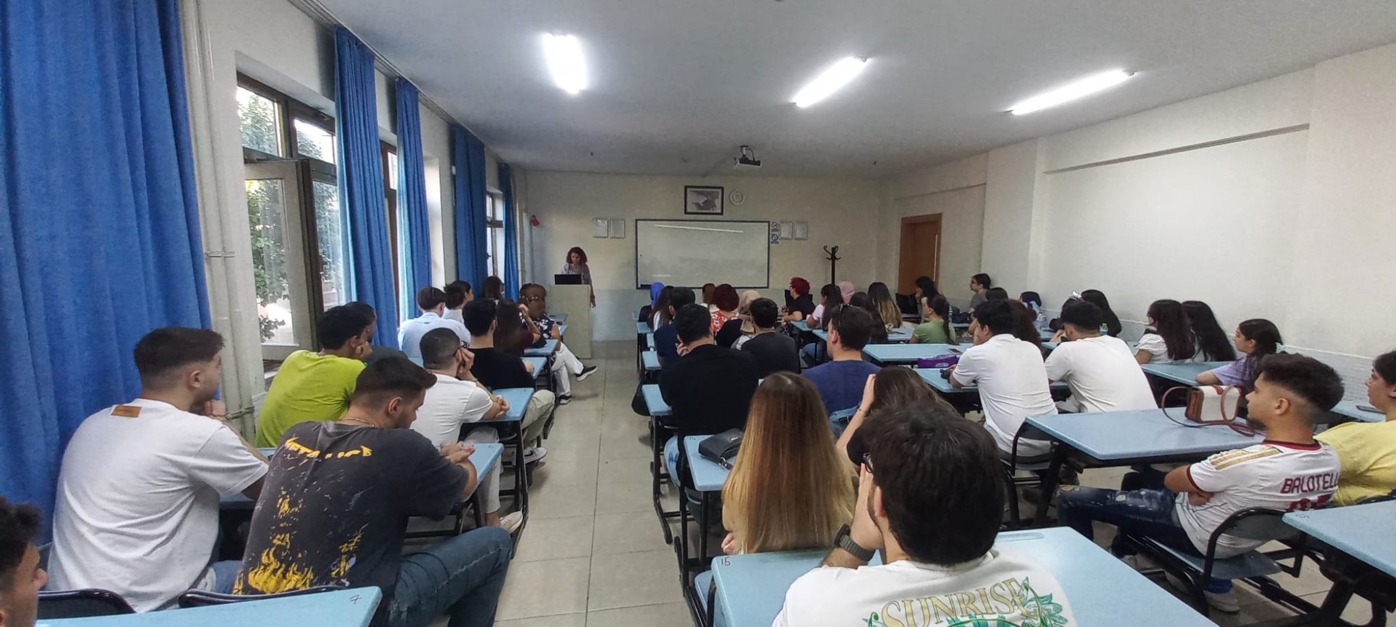 16 Eylül 2025 Salı günü ise sabah oturumunda Lojistik Programı, öğleden sonra oturumlarında ise Dış Ticaret ve Pazarlama Programı öğrencileri için Oryantasyon eğitimleri yapıldı. Eğitimlerde öğrenciler, merak ettikleri soruları yöneltme fırsatı buldu ve yüksekokula dair önemli bilgiler edindi. Programlara, SBMYO Müdür Yardımcıları Öğr. Gör. Dr. Emrah Yıldız, Öğr. Gör. Dr. Yazbahar Çetin Doğan ve ilgili programların öğretim üyesi/elemanları katılım sağladı. Sosyal Bilimler Meslek Yüksekokulu’nda oryantasyon programları hafta boyunca diğer program öğrencilerinin katılımıyla devam edecek.