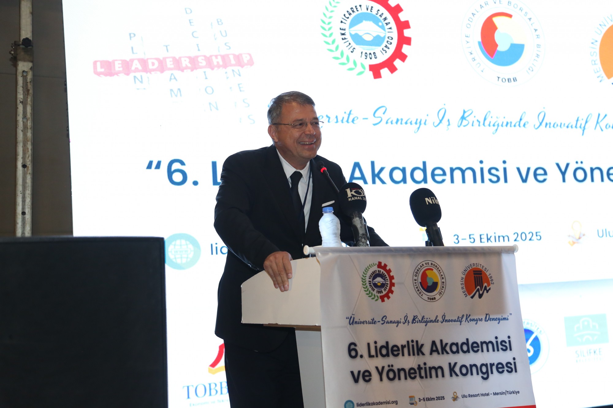 Saygı duruşu ve İstiklal Marşı’nın ardından başlayan programda açılış konuşmasını gerçekleştiren Rektörümüz Prof. Dr. Erol Yaşar, “Liderlik Akademisi, 2019 yılından bu yana iş dünyasının temsilcileriyle akademik bilginin buluştuğu, ülkemiz için değer üreten özgün bir platform haline gelmiştir. Mersin Üniversitesi olarak bu projenin paydaşı olmaktan ve en başından itibaren katkı sunmaktan onur duyuyoruz. Bilimsel bilginin sahaya taşınmadığı, sanayi ve girişimcilik ekosistemiyle buluşturulmadığı sürece gelişmelerin kalıcı olmayacağını biliyoruz. Bizler için üniversite-sanayi iş birliği bir tercih değil, toplumsal gelişmenin temel şartıdır.” dedi.