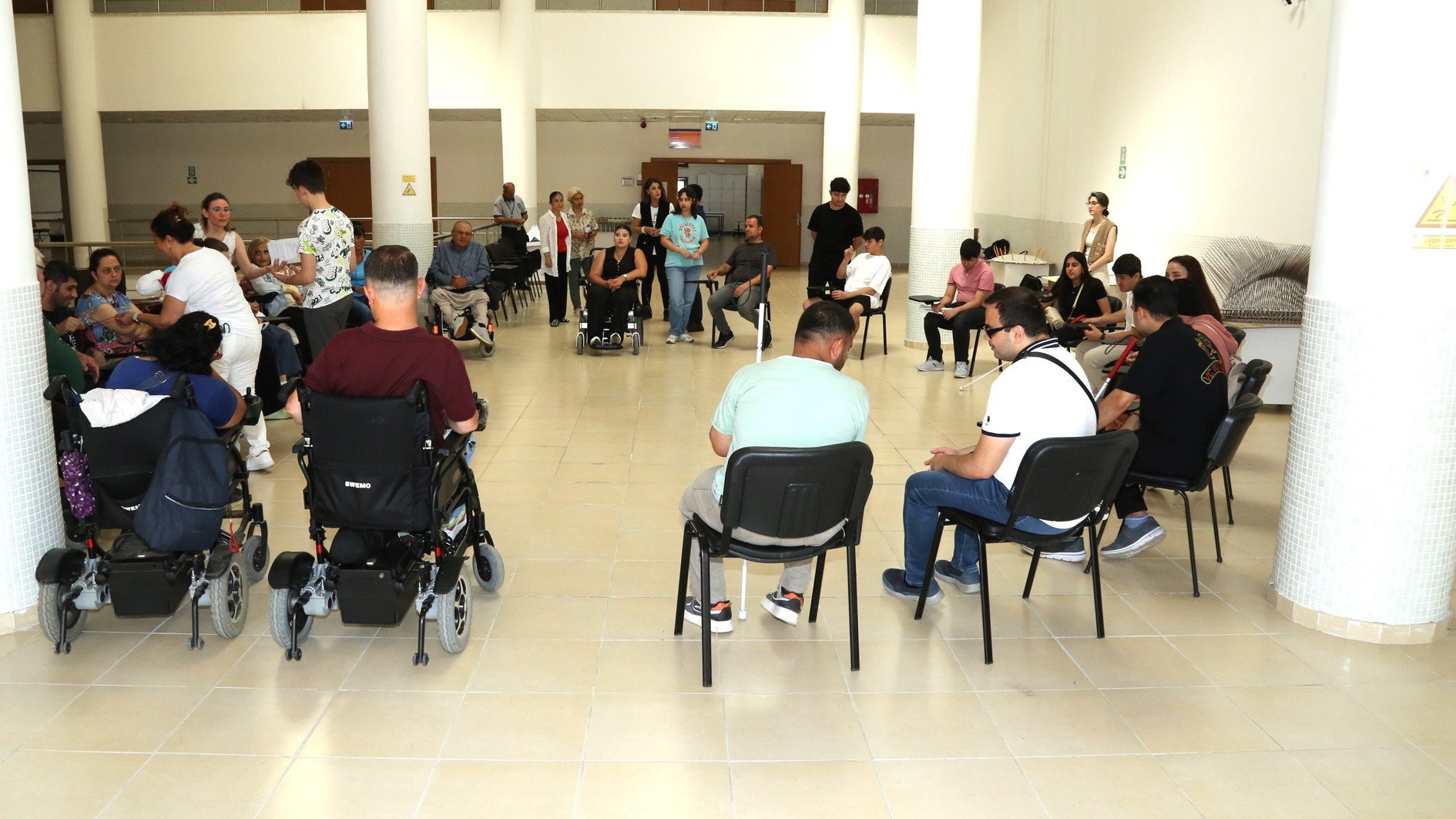 Eğitimlere, 12 görme, 12 işitme ve 12 fiziksel engelli birey ve refakatçileri katılmıştır.