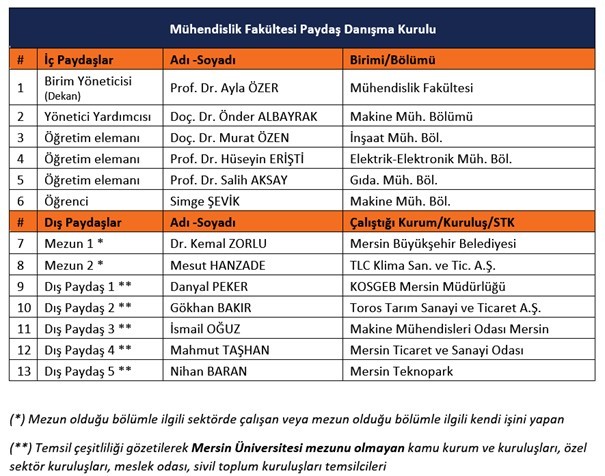 Mersin Üniversitesi Mühendislik Fakültesi Paydaş Danışma Kurulu Toplantısı, Dekanımız Prof. Dr. Ayla Özer başkanlığında 8 Ekim 2025 tarihinde Fakülte Toplantı Salonu’nda gerçekleştirilmiştir.