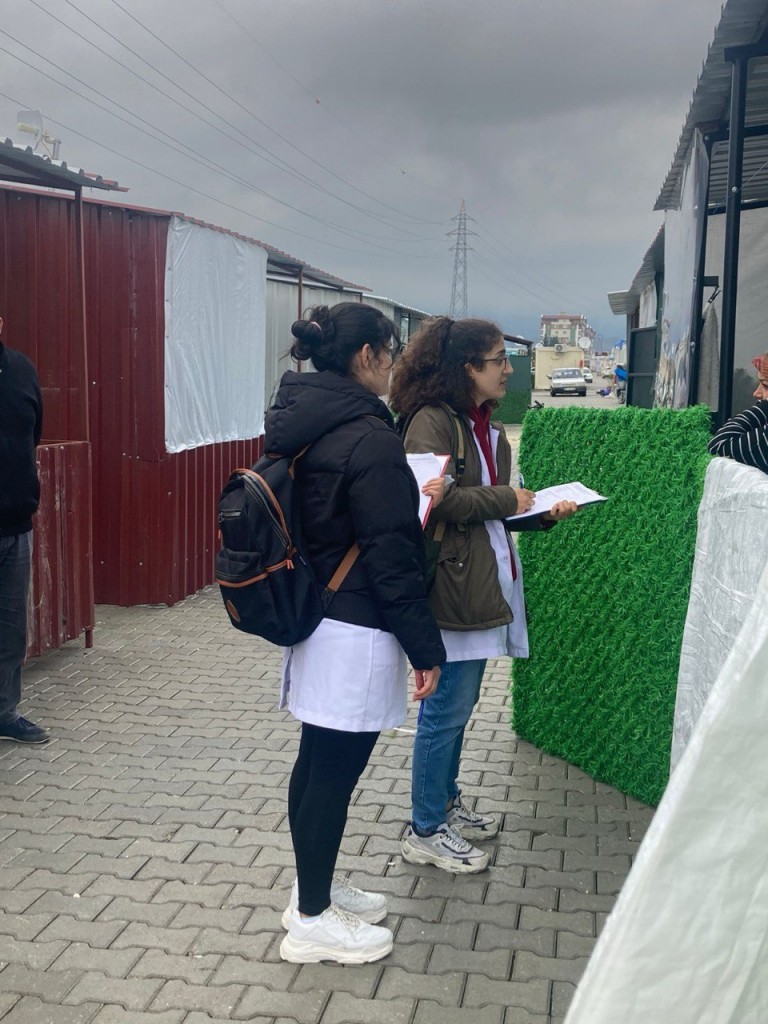 Öğrencilerimiz, proje kapsamında 09–24 Mart 2024 tarihleri arasında Hatay’da bulunan 15 konteyner kentte 696 haneyi ziyaret ederek araştırma verilerini topladılar. Ayrıca, ebelik eğitimleri süresince kazandıkları bilgi ve becerileri sahaya aktararak perinatal süreçteki kadınlara, bebeklere ve ailelerine gereksinimleri doğrultusunda danışmanlık hizmeti sundular.