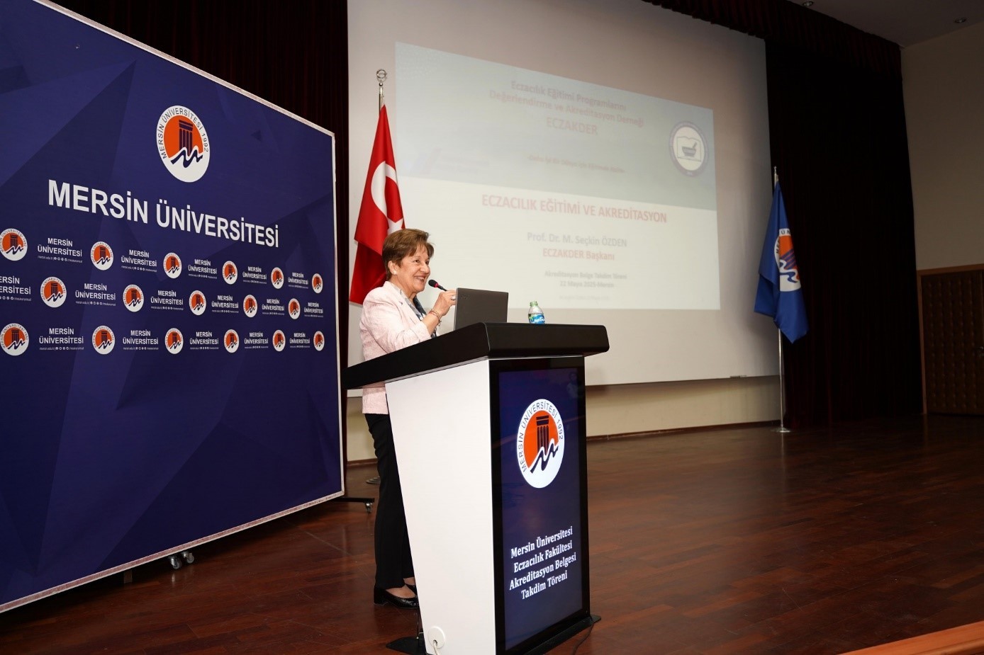 ECZAKDER Başkanı Prof. Dr. M. Seçkin ÖZDEN, akreditasyonun yalnızca bir belge değil, eğitimde kalite güvencesinin sistemli bir teminatı olduğunu vurguladı. Prof. Dr. ÖZDEN, “Dünya Sağlık Örgütü’nün tahminlerine göre, 2030 yılına kadar 10 milyona yakın sağlık çalışanı açığı oluşacak. Bu tablo, nitelikli sağlık profesyonellerinin yetiştirilmesinde eczacılık eğitiminin stratejik önemini bir kez daha ortaya koyuyor. Kaliteli eczacılık eğitimi, sadece bireysel mesleki gelişimi değil, aynı zamanda toplum sağlığını doğrudan etkileyen bir unsurdur. Türkiye’de sayısı 60’ı aşan Eczacılık Fakültesinden 17’si tam, 5’i ise koşullu akreditasyon almıştır. 2024 yılı itibariyle yeniden başvuru yapan Fakülteler arasında Mersin Üniversitesi tam akreditasyon belgesi almaya hak kazanmıştır.