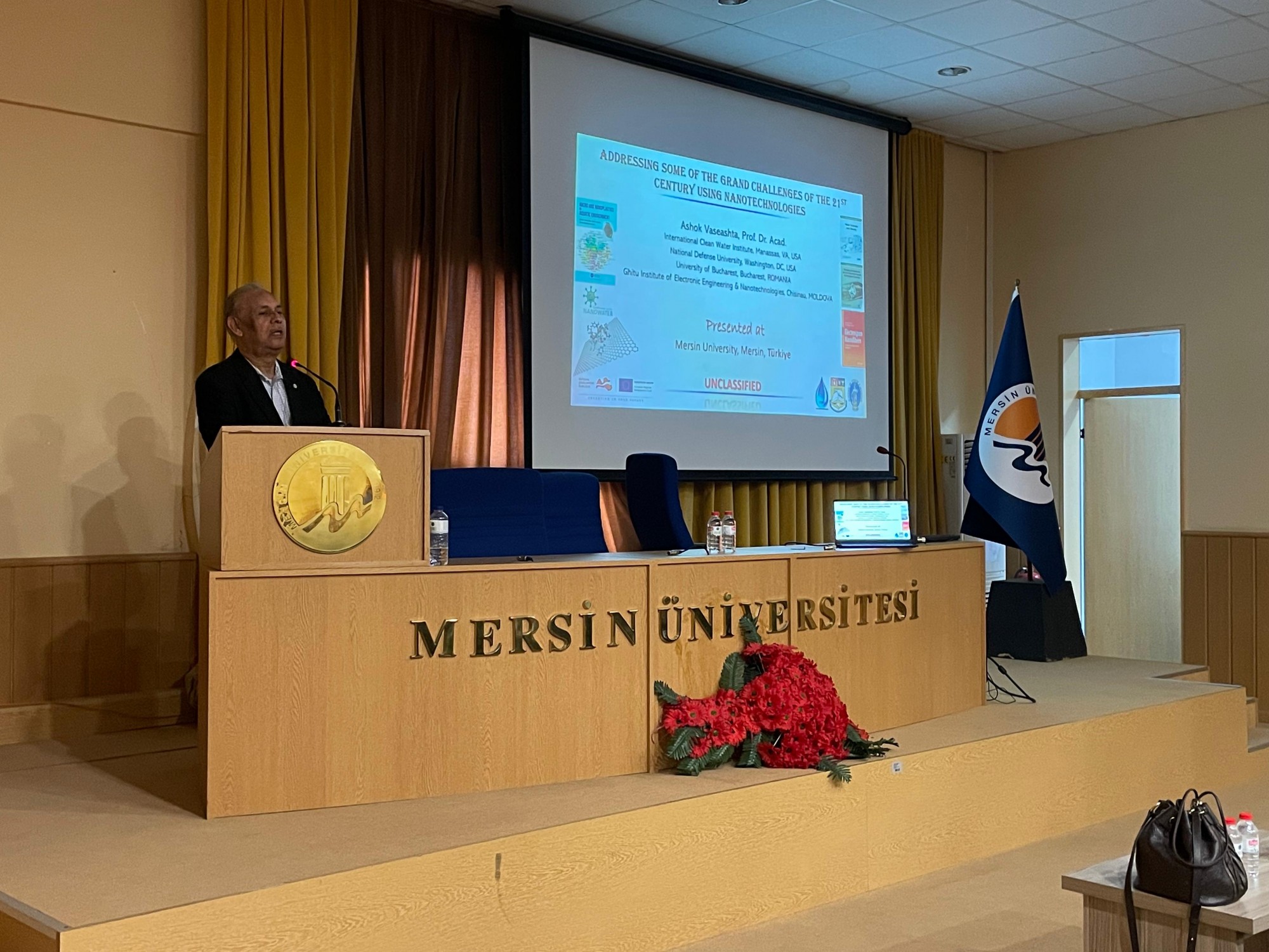 Mühendislik Fakültesi Konferans Salonu’nda 27 Ekim 2025 tarihinde gerçekleştirilen seminerde, International Clean Water Institute (USA) araştırmacısı Prof. Dr. Ashok Vaseashta, “Addressing Some of the Grand Challenges of the 21st Century Using Nanotechnologies” başlıklı bir sunum yaptı.