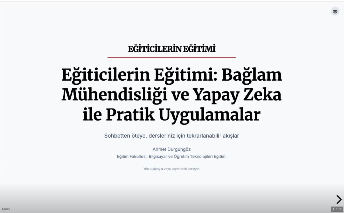 Mersin Üniversitesi Öğrenme ve Öğretmeyi Geliştirme Uygulama ve Araştırma Merkezi ile Eğitim Fakültesi iş birliğiyle düzenlenen “Eğiticilerin Eğitimi I” programının üçüncü etkinliği, “Bağlam Mühendisliği: Eğitimde Yapay Zekâ ile Pratik Yaklaşımlar” başlığıyla 24 Ekim 2025 tarihinde çevrim içi olarak gerçekleştirildi.