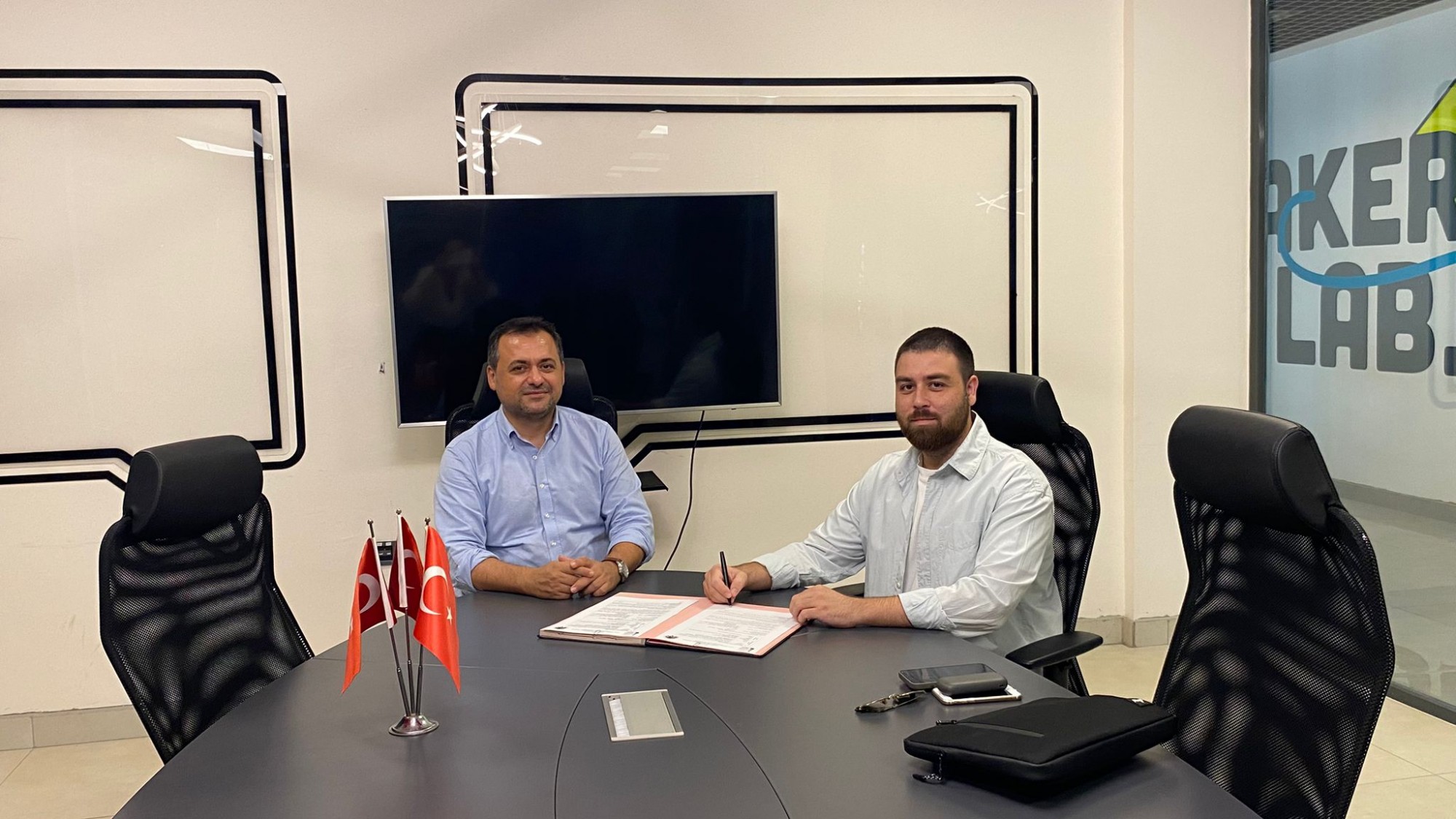 11 Kasım 2025 tarihinde, Merkezimizin sunduğu imkânlardan faydalanacak olan yeni girişimcimiz Meü. Sosyal Bilimler Enstitüsü İşletme Tezli Yüksek Lisans öğrencisi Burak YAŞASIN, Merkez Müdürümüz Dr. Öğr. Üyesi Gürbüz ÇOMAK ile karşılıklı olarak sözleşme imzalamıştır.