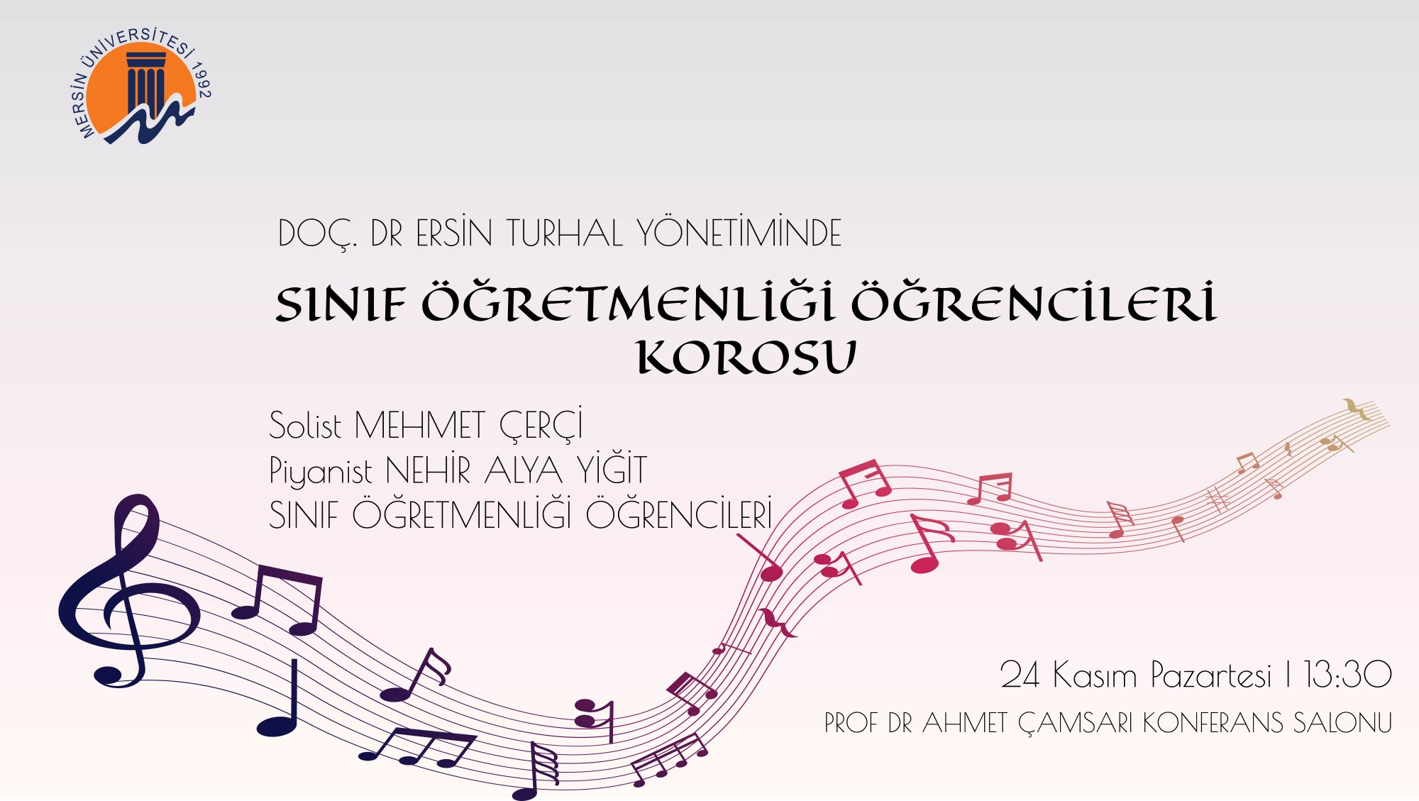 - 24 Kasım Pazartesi günü saat 13:30'da Açılış ve Doç. Dr. Ersin TURHAL yönetiminde Eğitim Fakültesi Korosu