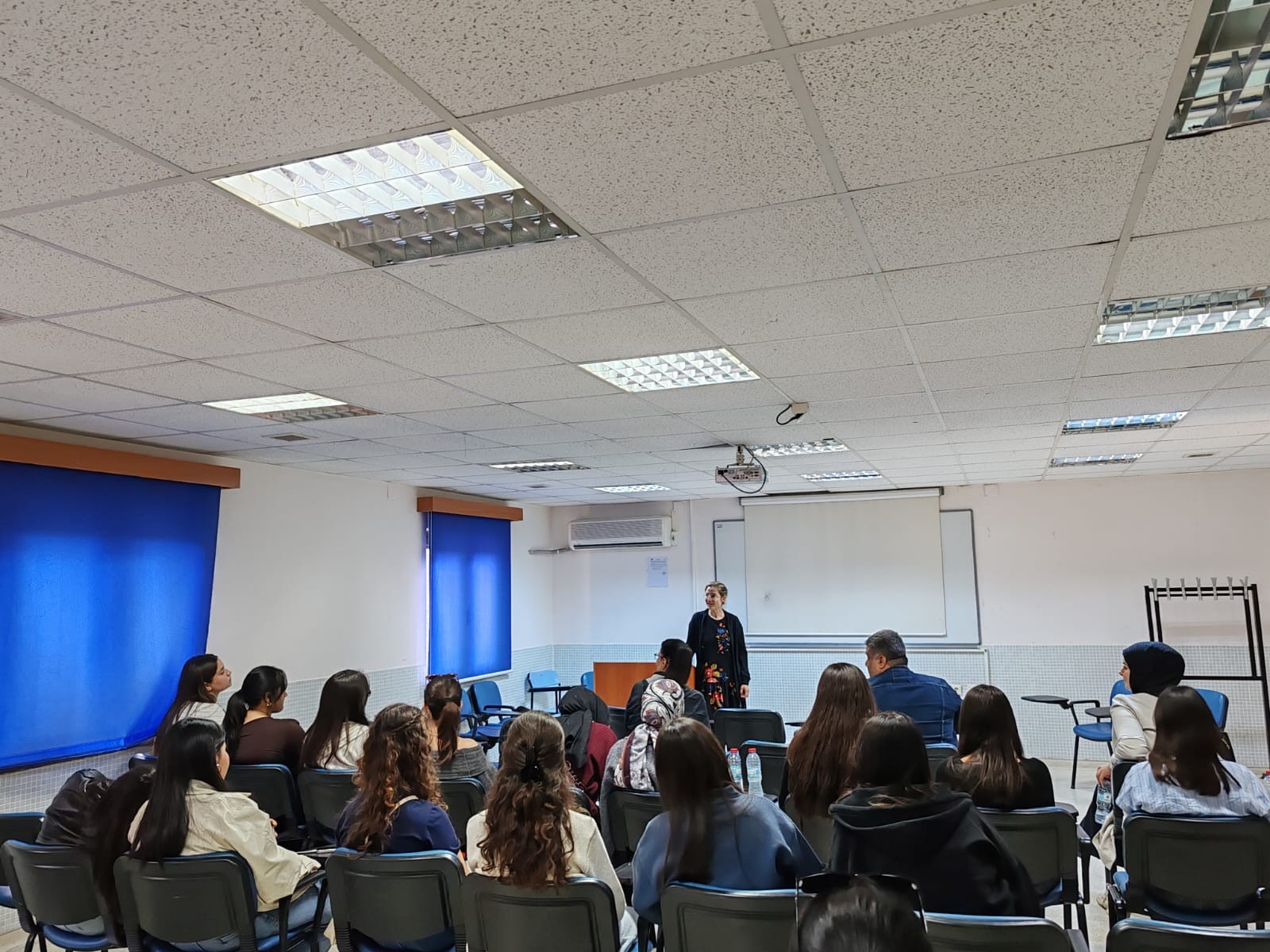Ebelik Bölümü’ne yönelik bilgilendirme ise Bölüm Başkanı Dr. Öğr. Üyesi Aslı Eker tarafından gerçekleştirildi. Eker, ebelik mesleğinin temel görev ve sorumluluklarını, bölümün eğitim-öğretim süreçlerini, klinik uygulama imkânlarını ve mezuniyet sonrası kariyer olanaklarını öğrencilere aktardı. Ayrıca öğrencilerin merak ettiği sorular yanıtlanarak mesleki yönelimlerine katkı sağlandı.
