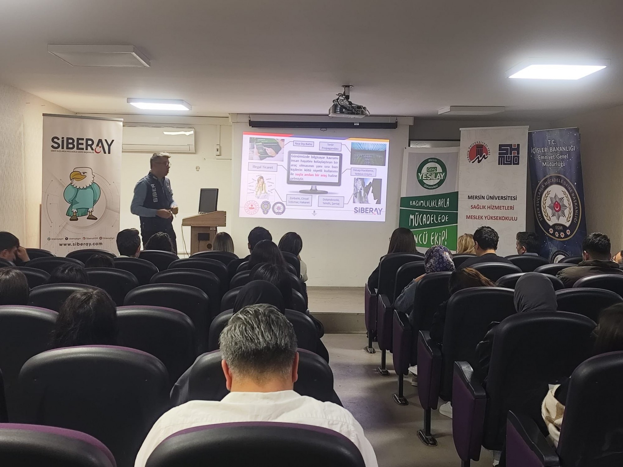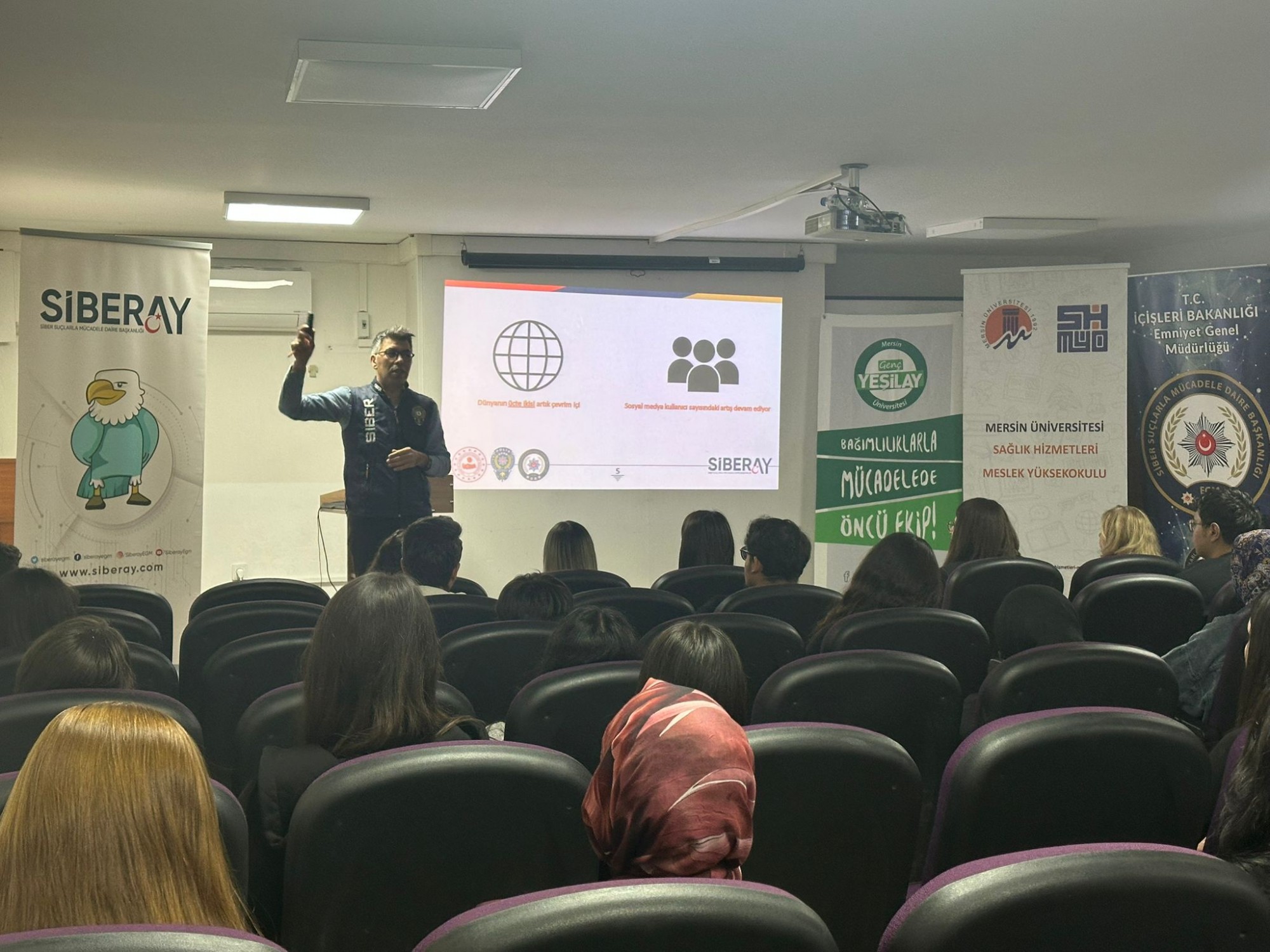 Konferansta; güvenli internet kullanımı, dijital ortamda karşılaşılabilecek riskler, siber zorbalığın türleri ve korunma yolları hakkında kapsamlı bilgiler paylaşıldı. Mersin İl Emniyet Müdürlüğü Siber Suçlarla Mücadele Şube Müdürlüğü’nde görevli polis memuru tarafından yapılan sunumda, özellikle gençlerin dijital dünyada bilinçli, güvenli ve sorumlu bireyler olarak hareket etmelerinin önemi vurgulandı.