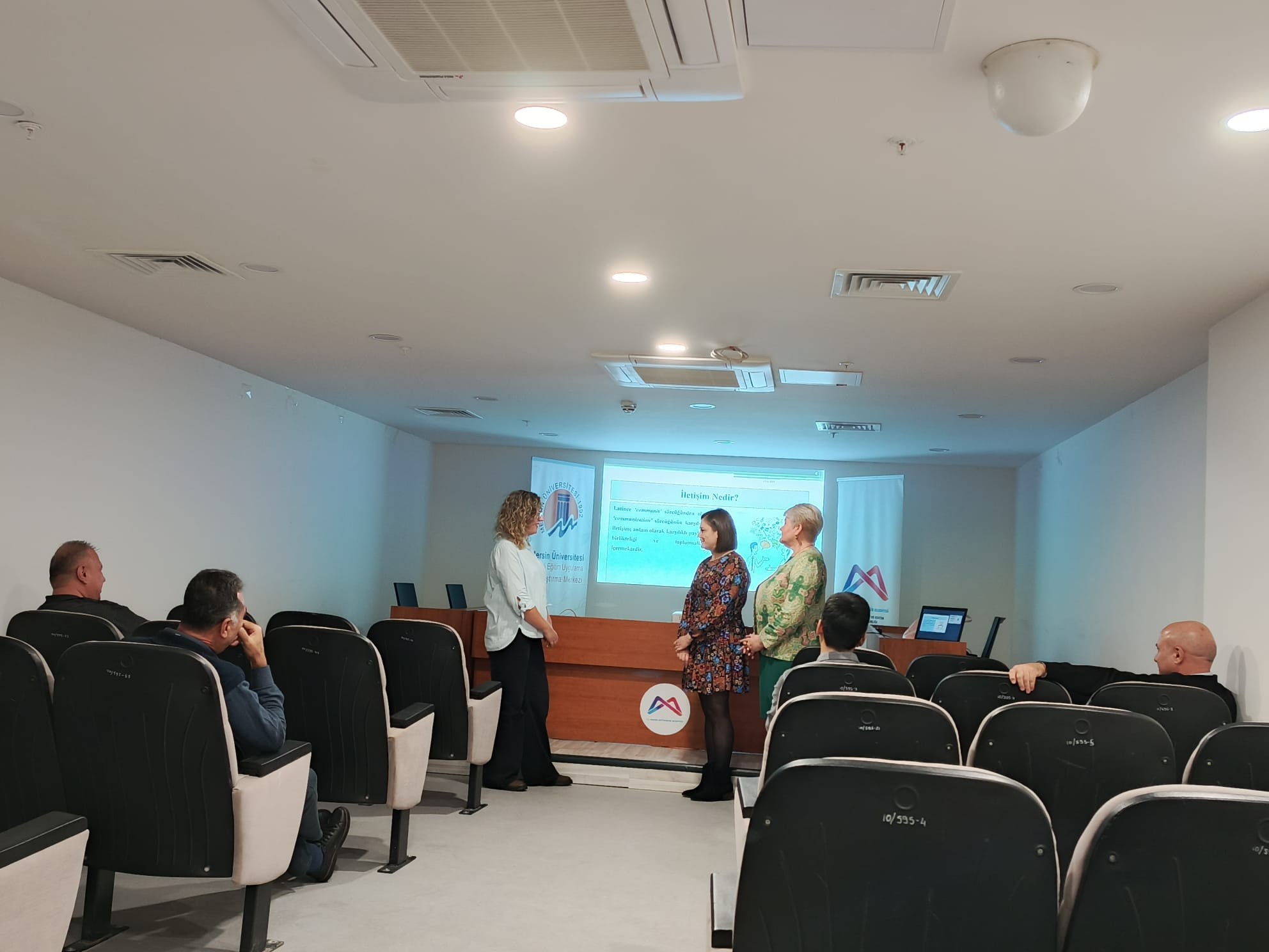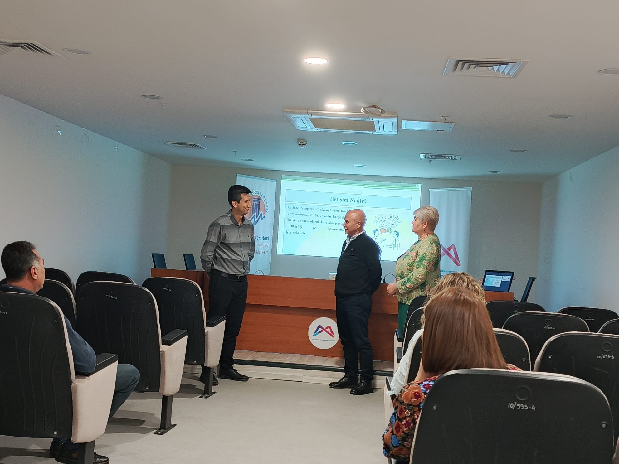 Prof. Dr. Mualla YILMAZ tarafından, 27 Kasım 2025 tarihinde, Mersin Büyükşehir Belediyesi çalışanlarına yönelik olarak “Diksiyon Eğitimi ve Etkili İletişim” konulu bir eğitim gerçekleştirilmiştir. Eğitim kapsamında; etkili iletişimin temel ilkeleri, doğru ve anlaşılır konuşmanın önemi, ses tonu ve vurgu kullanımı, beden dili ile sözel iletişim arasındaki ilişki ve iletişim becerilerinin geliştirilmesine yönelik uygulamalı örneklere yer verilmiştir.