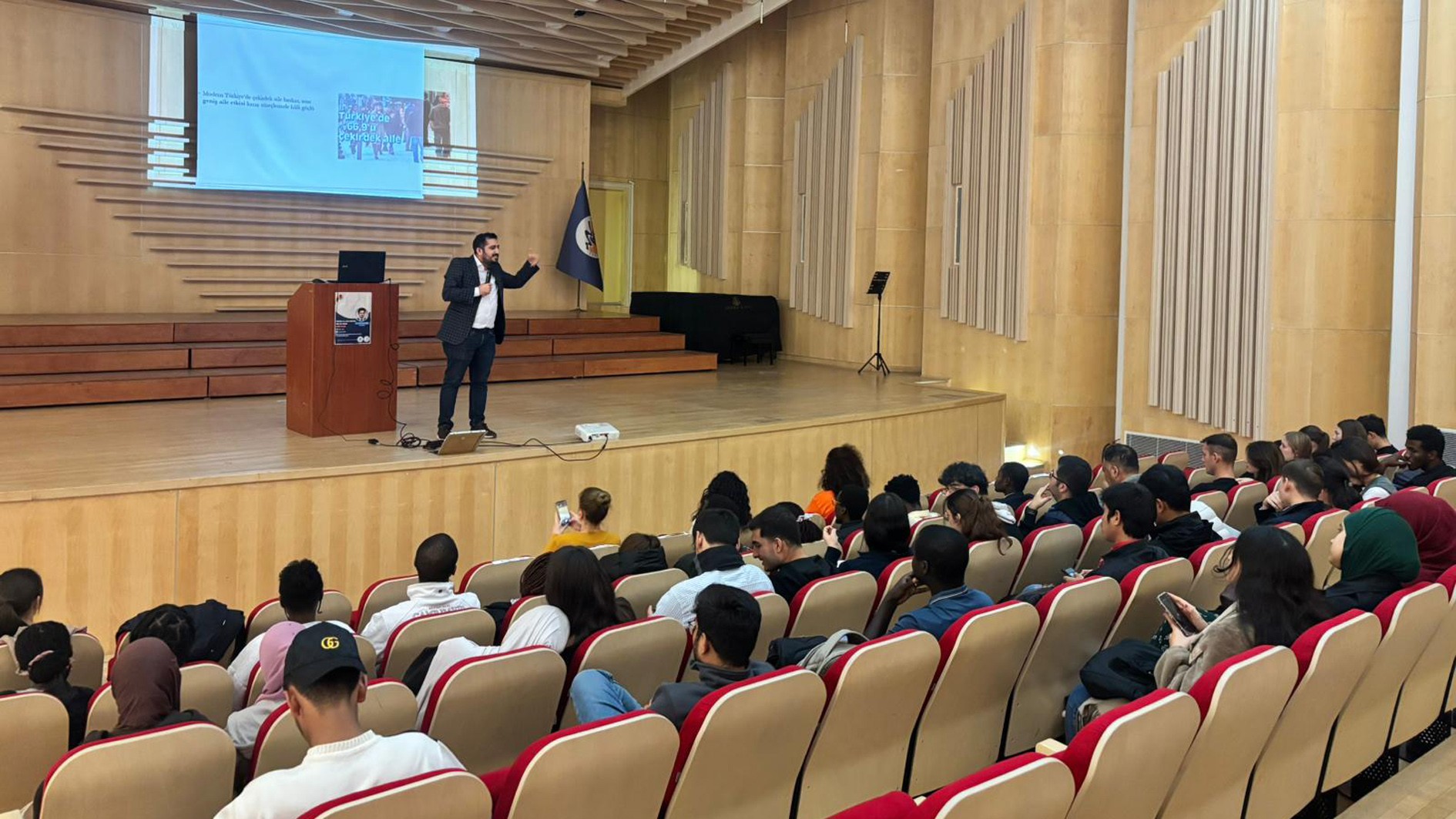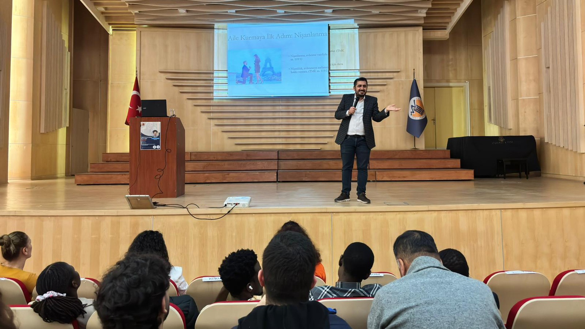 Konferansa, TUAM ve YÖRMER Müdürü Doç. Dr. İmran Gündüz Alptürker, TUAM müdür yardımcıları, öğretim elemanları ve uluslararası öğrenciler katıldı. Konferansta Dr. Öğr. Üyesi Bilal Özel tarafından; aile kurumunun toplumsal yapımızdaki yeri, aile kavramının hukuki boyutu, çocuk hakları, nafaka ve velayet gibi temel aile hukuku konularına ilişkin bir sunum yapıldı. Sunumun ardından katılımcıların soruları yanıtlandı.