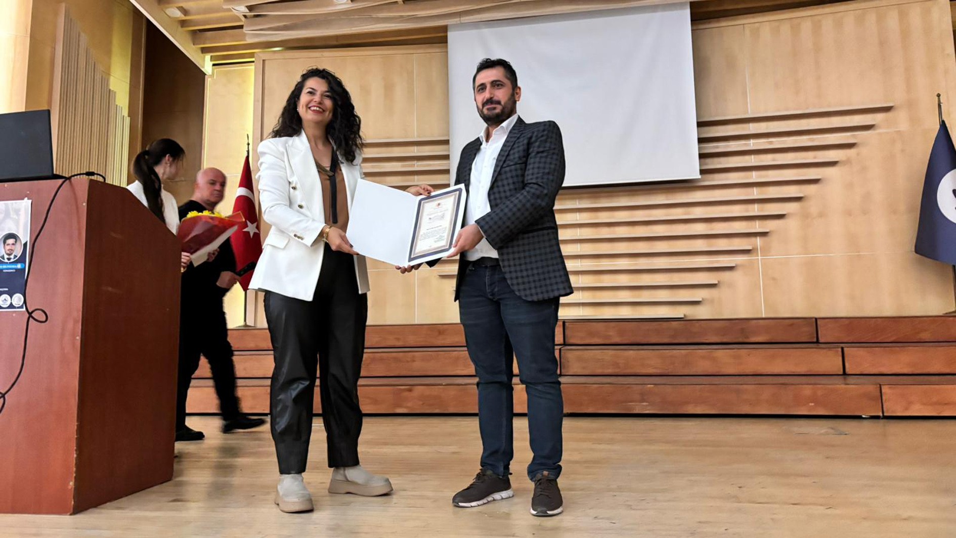 Program sonunda, TUAM ve YÖRMER Müdürü Doç. Dr. İmran Gündüz Alptürker tarafından, konferansa katılımı ve katkıları dolayısıyla Dr. Öğr. Üyesi Bilal Özel’e teşekkür belgesi ve çiçek takdim edildi.