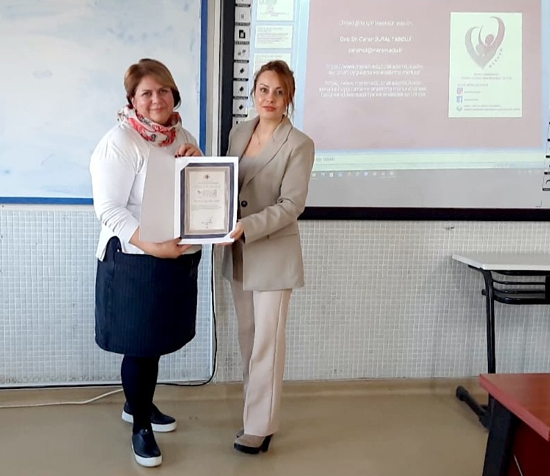 Programın sonunda, Sosyal Bilimler Meslek Yüksekokulu’nda gerçekleştirilen bilgilendirme çalışmasına sunduğu katkılar dolayısıyla Doç. Dr. Canan Tasouji’ye teşekkür belgesi takdim edildi. Etkinlik, fotoğraf çekiminin ardından sona erdi.
