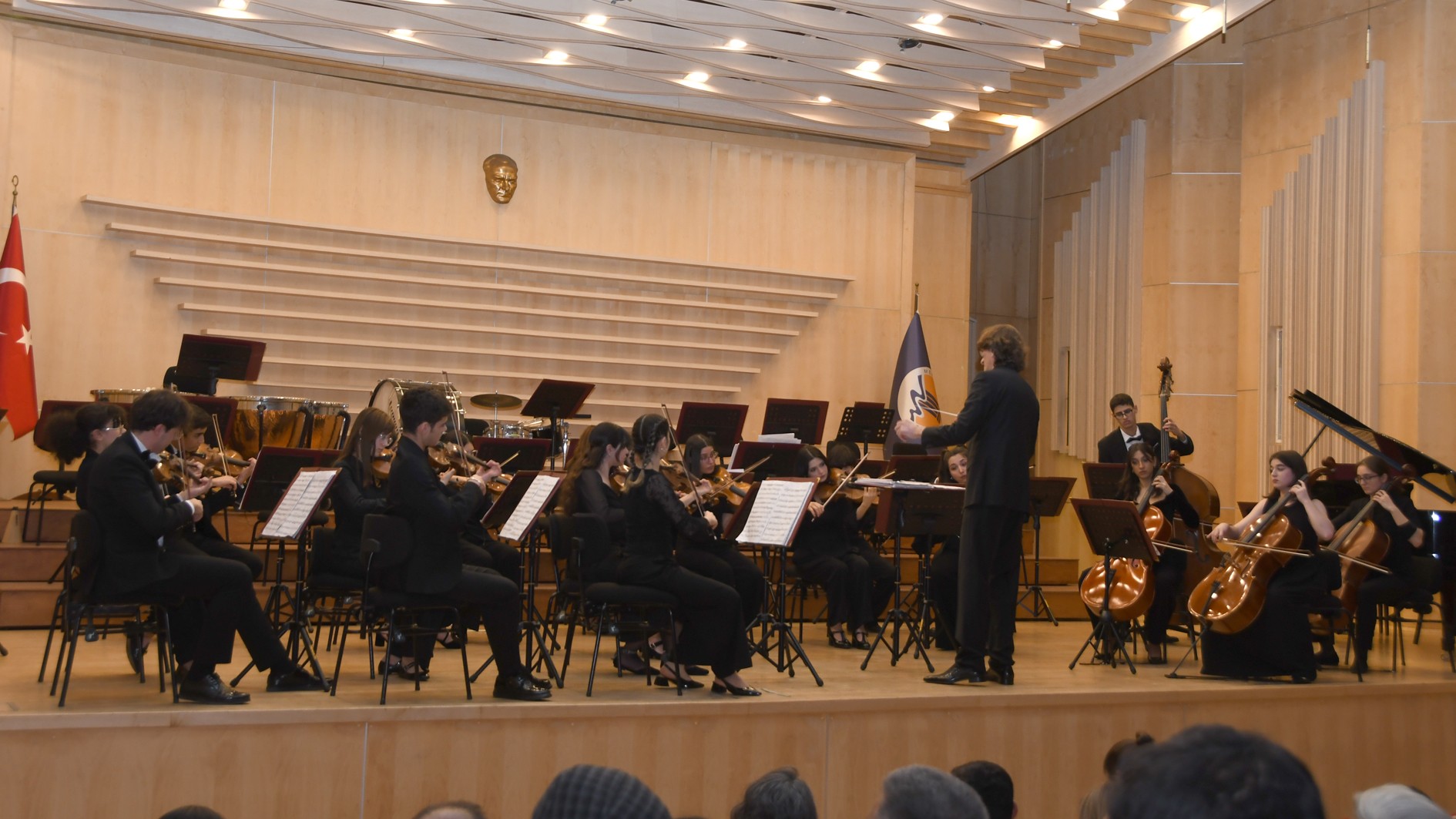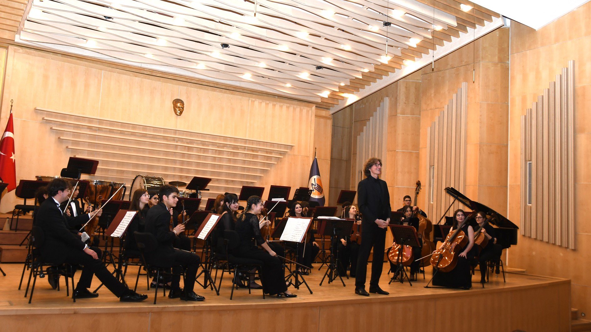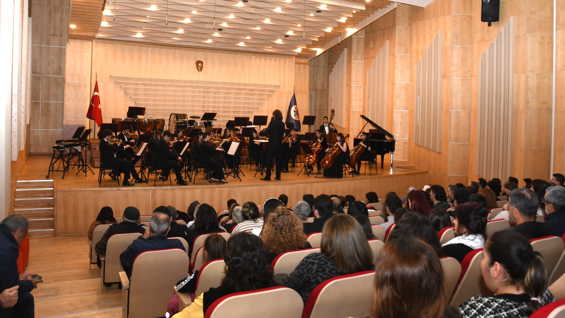Konsere; Müzik ve Sahne Sanatları Fakültesi akademisyenleri, öğrenciler ile orkestra üyelerinin aileleri katılım sağladı. Sanatseverlerin yoğun ilgisiyle gerçekleşen etkinlik, genç müzisyenlerin sahne deneyimini desteklemesinin yanı sıra, Üniversitemizin sanat ve kültür yaşamına katkı sunan çalışmalarının da önemli örneklerinden biri oldu.
