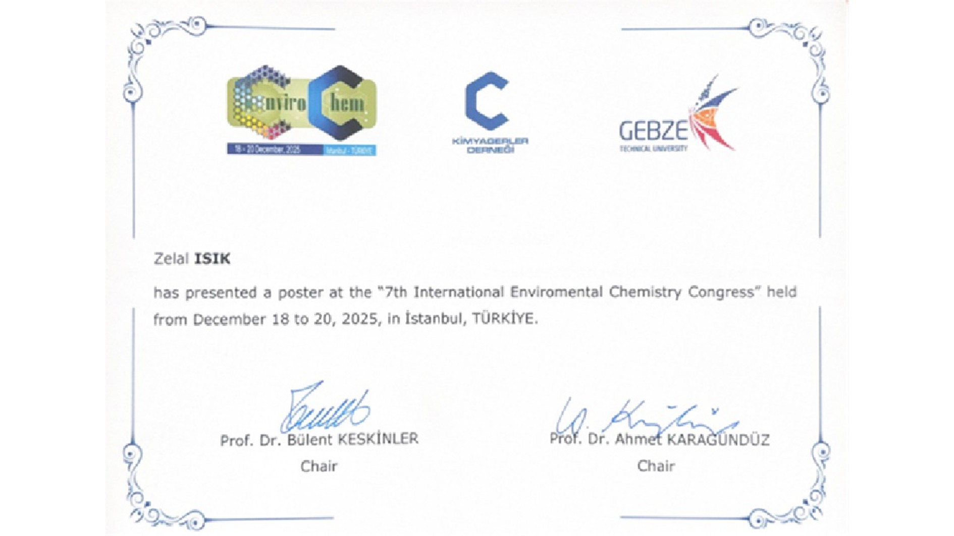 Bilim dünyasından farklı ülkelerden seçkin araştırmacıların katılımıyla 18–20 Aralık tarihleri arasında düzenlenen 7. Uluslararası Çevre Kimyası Kongresi’nde Üniversitemiz önemli bir başarıya imza attı.