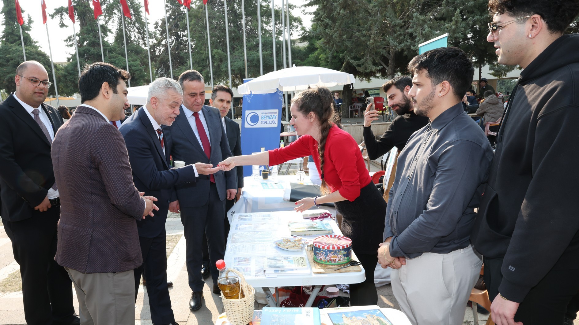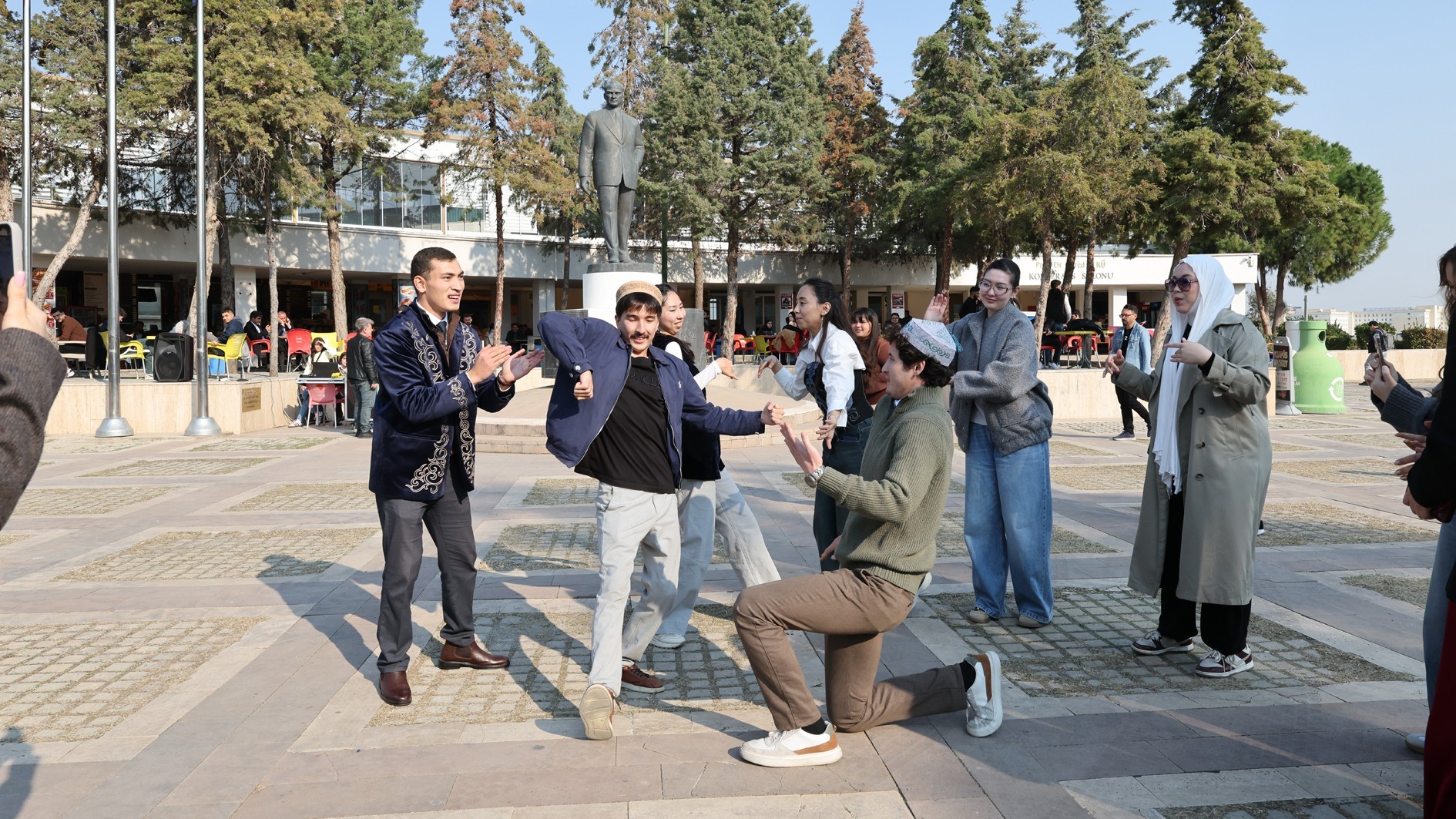 Etkinlikler kapsamında Üniversitemiz Cumhuriyet Meydanı’nda, 30 farklı ülkeden öğrencilerin kendi ülkelerine ait yerel danslarını, geleneksel yiyeceklerini, müziklerini, kültürel el yapımı eşyalarını, bayraklarını ve fotoğraflarını stantlarında sergilediği program; akademik ve idari personel ile öğrencilerin yoğun katılımıyla adeta bir şenlik alanına dönüştü.