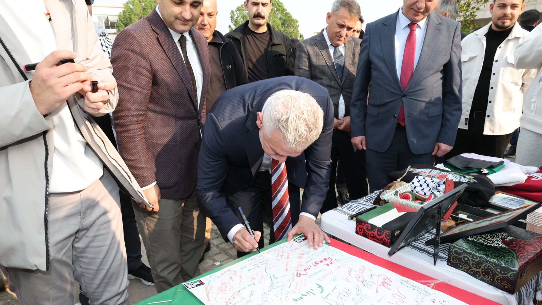 “Diplomat Öğrenci Buluşması” başlıklı söyleşi için Üniversitemizde bulunan Kuzey Kıbrıs Türk Cumhuriyeti (KKTC) Ankara Büyükelçisi İsmet Korukoğlu da beraberindeki heyetle birlikte Cumhuriyet Meydanı’ndaki etkinliklere katıldı.