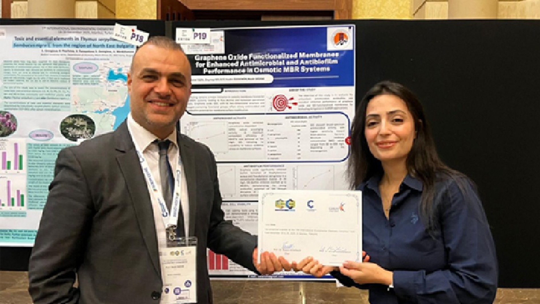 Üniversitemiz öğretim üyesi Prof. Dr. Nadir Dizge danışmanlığında, Dr. Zelal Işık’ın doktora tezi kapsamında yürütülen “Graphene Oxide Functionalized Membranes for Enhanced Antimicrobial and Antibiofilm Performance in Osmotic MBR Systems” başlıklı özgün bilimsel çalışma, kongre kapsamında değerlendirilen poster sunumları arasında Poster Birincilik Ödülü’ne layık görüldü.