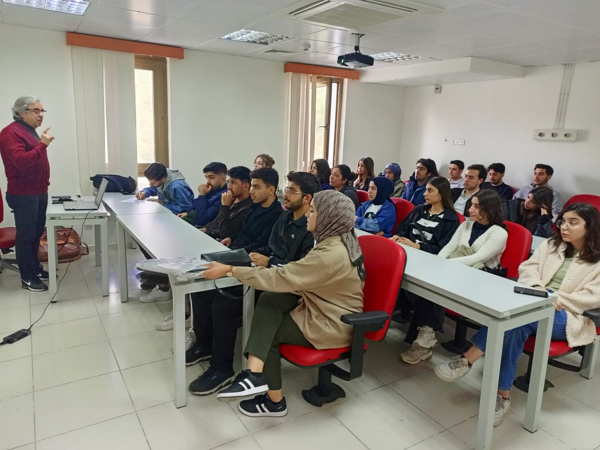 Mersin Üniversitesi Fen Fakültesi Öğretim Üyesi Prof. Dr. Kasım KURT tarafından yapılan sunumda, radyasyonun tanımı, iyonlaştırıcı ve iyonlaştırıcı olmayan radyasyon türleri, biyolojik etkileri, güvenlik ve korunma yöntemleri, günlük hayat ve faydalı kullanım alanları gibi konuları kapsayan bir sunum gerçekleştirilmiştir. Radyasyonla ilgili birimleri, doz kavramlarını, madde ile etkileşimini, LET ve DNA hasarı gibi biyolojik süreçlere değinilmiştir. Doğal ve yapay kaynakların örnekleri verilerek günlük maruziyet yolları anlatılarak, iyonlaştırıcı olmayan radyasyon için SAR metrikleri ve güvenlik önlemleri açıklanmıştır. Korunma felsefesi "ALARA" yaklaşımı ile özetlenmiş ve tıbbi, endüstriyel, araştırma gibi çeşitli kullanım alanlarından bahsedilmişitir.