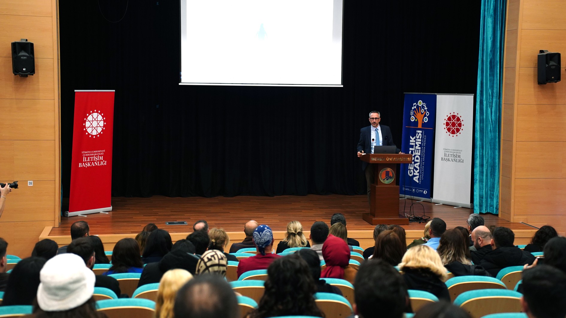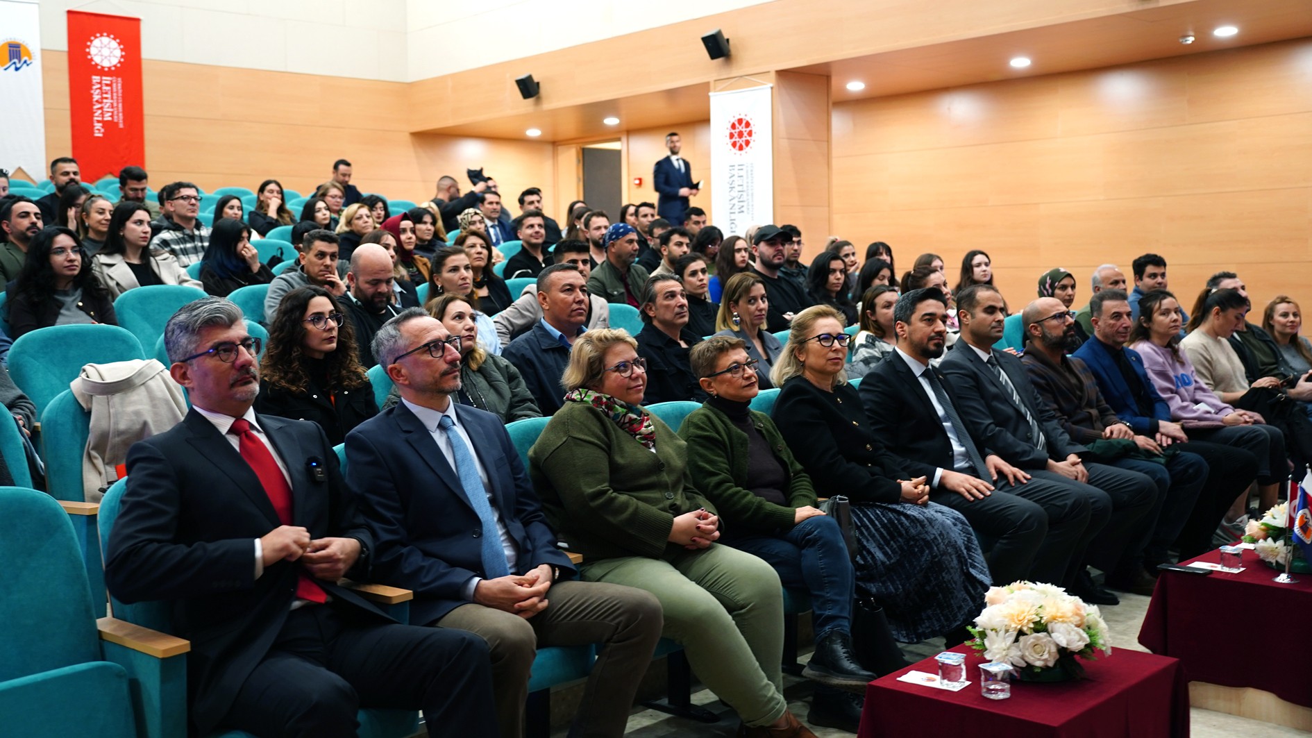 10 Şubat Salı günü Üniversitemiz Gençlik Merkezi Konferans Salonu’nda düzenlenen eğitim Programına Türkiye Cumhuriyeti İletişim Başkanlığı Adana Bölge Müdürü Mustafa Yalınız, İletişim Fakültesi Dekanı Prof. Dr. Aslıhan Ardıç Çobaner, akademik personel, Mersin ili genelinde kamu kurum ve kuruluşlarının basın, halkla ilişkiler ve iletişim alanlarında çalışan personeli ve öğrenciler katılım sağladı.