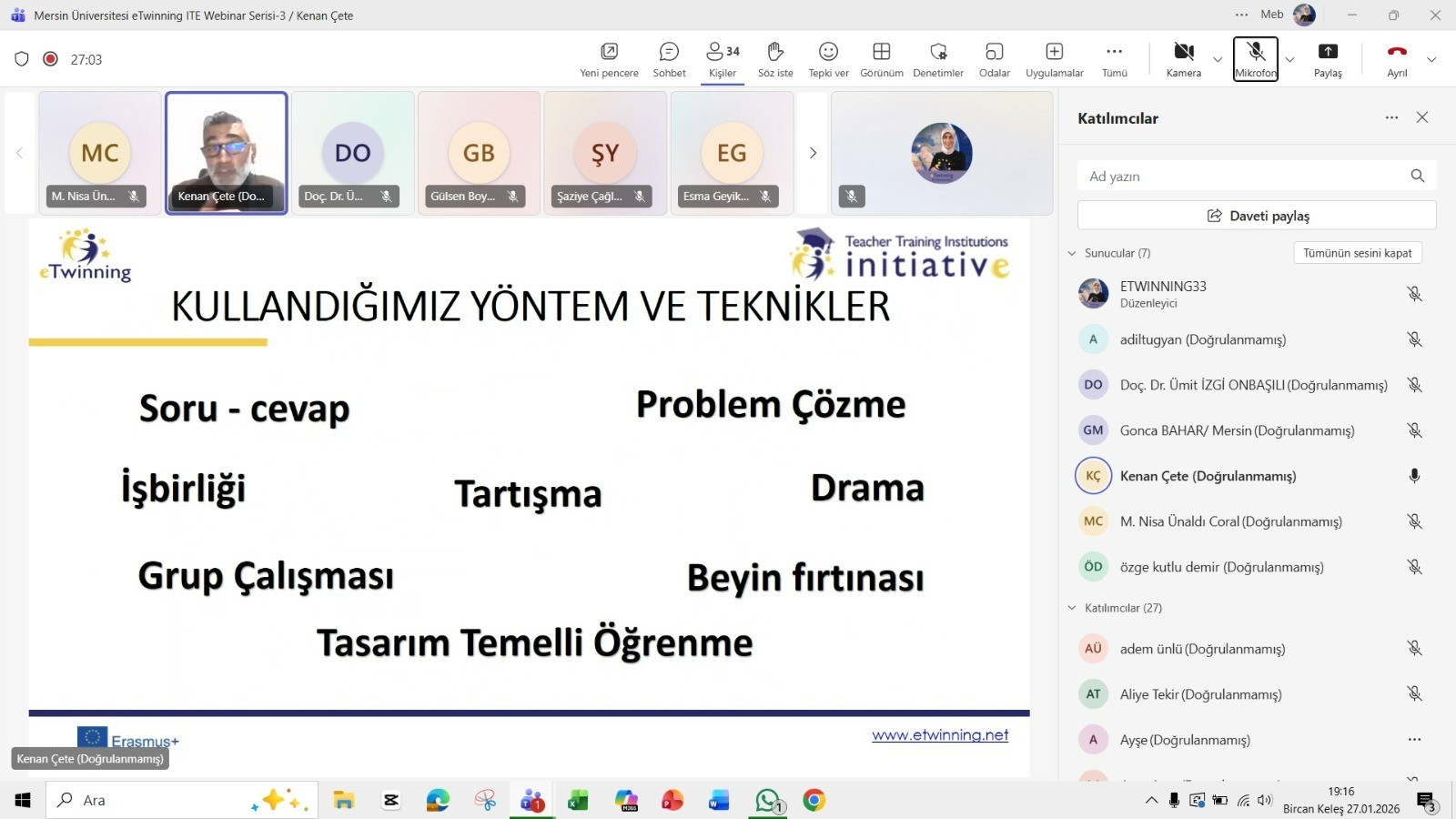 Bu kapsamda gerçekleştirilen çevrim içi oturumlardan ilki, 14 Ocak 2026 tarihinde Avrupa Okul Ağı ESEP-eTwinning Online Öğrenme Uzmanı Adil Tuğyan tarafından “21. Yüzyıl Eğitimi Bağlamında eTwinning” başlıklı eğitim ile başladı. 27 Ocak 2026 tarihinde “eTwinning Proje Planlama ve İçerik Araçları” başlığıyla düzenlenen oturumda eTwinning projelerinin planlama basamakları, proje kurgusunun yapılandırılması ve içerik geliştirme süreçlerinde kullanılabilecek dijital araçlar uygulamaya dönük örneklerle ele alındı. Webinarın sunumu, eTwinning İçerik Geliştirme Eğitmeni Kenan Çete tarafından gerçekleştirildi.