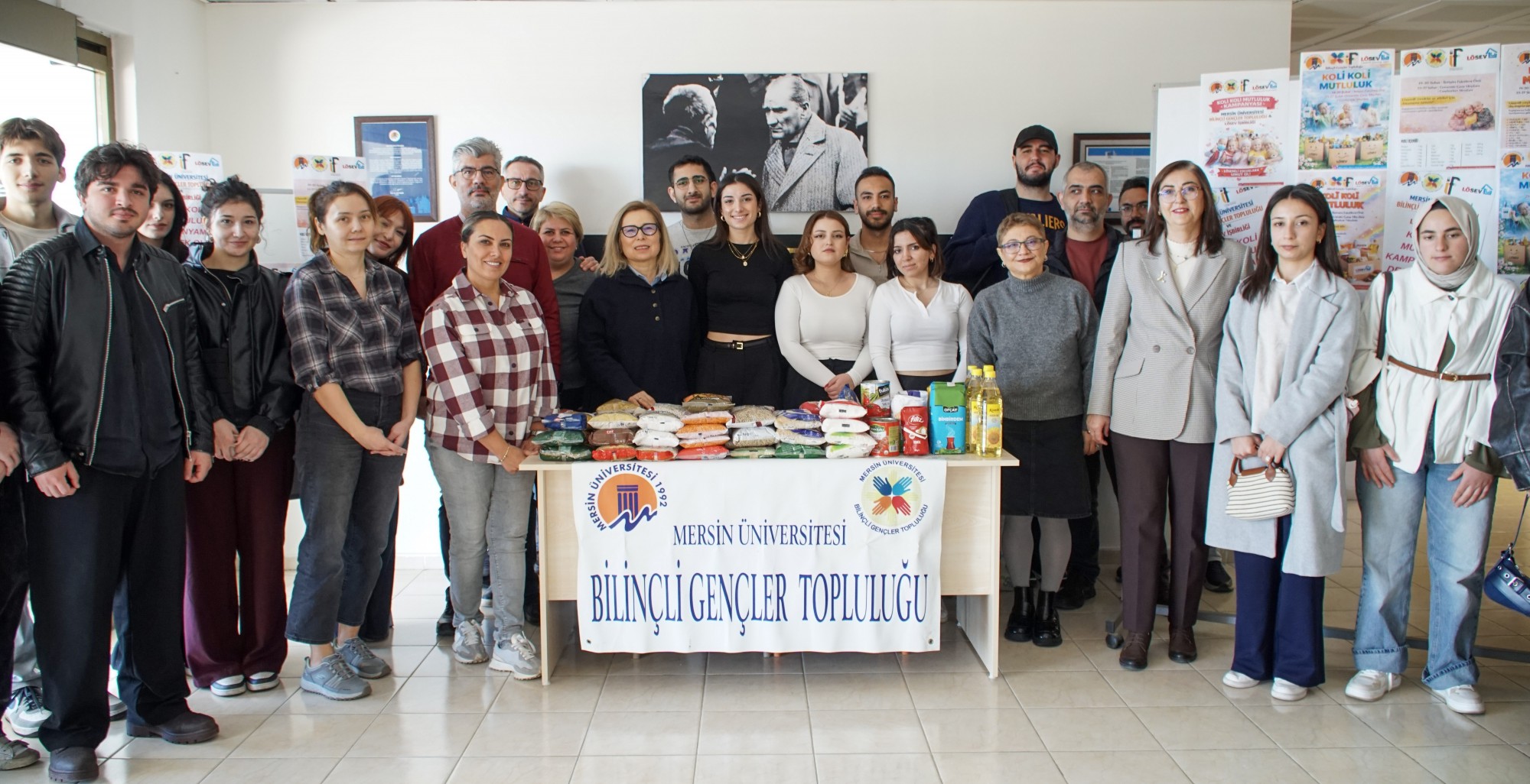 Mersin Üniversitesi İletişim Fakültesi önünde gerçekleştirilen “Koli Koli Mutluluk” kampanyası, üniversite bileşenlerinin yoğun katılımıyla tamamlandı. Mersin Üniversitesi Bilinçli Gençler Topluluğu ile LÖSEV iş birliğinde düzenlenen etkinlikte, lösemili çocuklar ve aileleri için temel gıda kolileri hazırlandı.