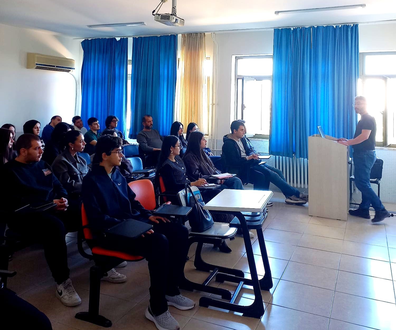 Mersin Üniversitesi Sosyal Bilimler Meslek Yüksekokulu Lojistik Programı tarafından düzenlenen ATAKO Mesleki Çalışma Semineri kapsamında gerçekleştirilen etkinlik, Lojistik Programı Öğr. Gör. Erdem Daşçı’nın koordinasyonunda yürütüldü. Program çerçevesinde Kıdemli IT Uzmanı Mustafa Gör öğrencilerle bir araya gelerek lojistik sektöründe yapay zekâ uygulamalarına ilişkin güncel gelişmeleri paylaştı.