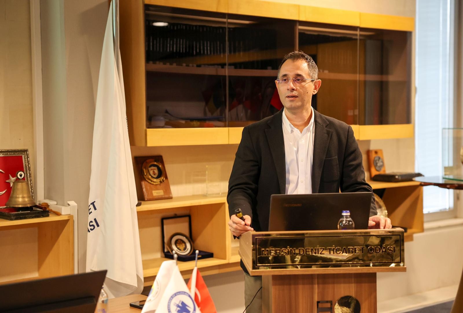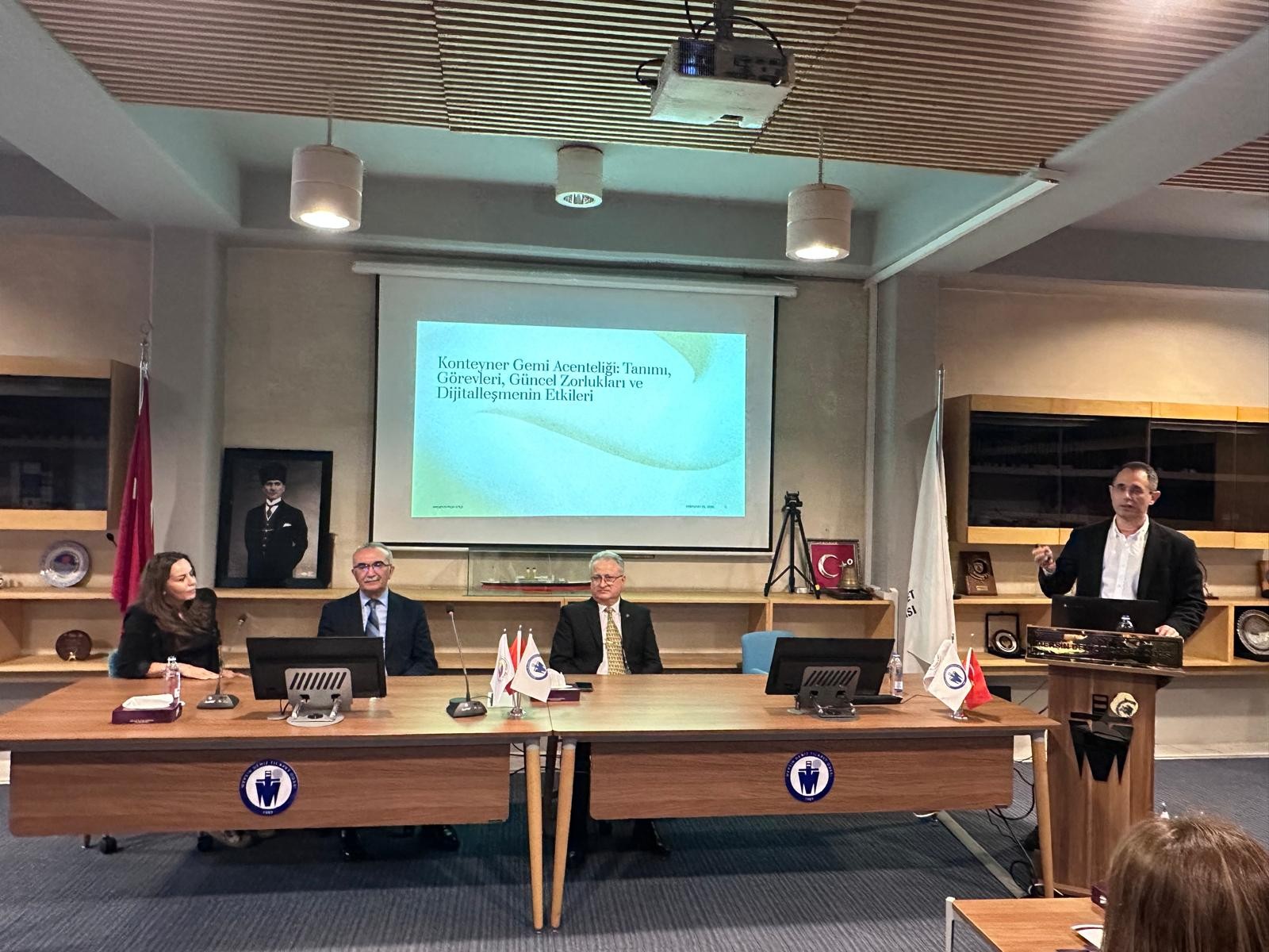 Eğitimin başlangıç kısmında Mersin Deniz Ticaret Odası genel sekreteri Fuat Gedik Odanın kuruluş ve faaliyetleri hakkında öğrencilere bilgi verdi. Daha sonra ise Deniz Ticaret Odası yönetim kurulu üyesi ve MSC Gemi Acenteliği Mersin Bölge Müdürü Uğur Tosuner gemi acenteliği konusunda kapsamlı bir mesleki bilgilendirme ve deneyimlerini aktardı.