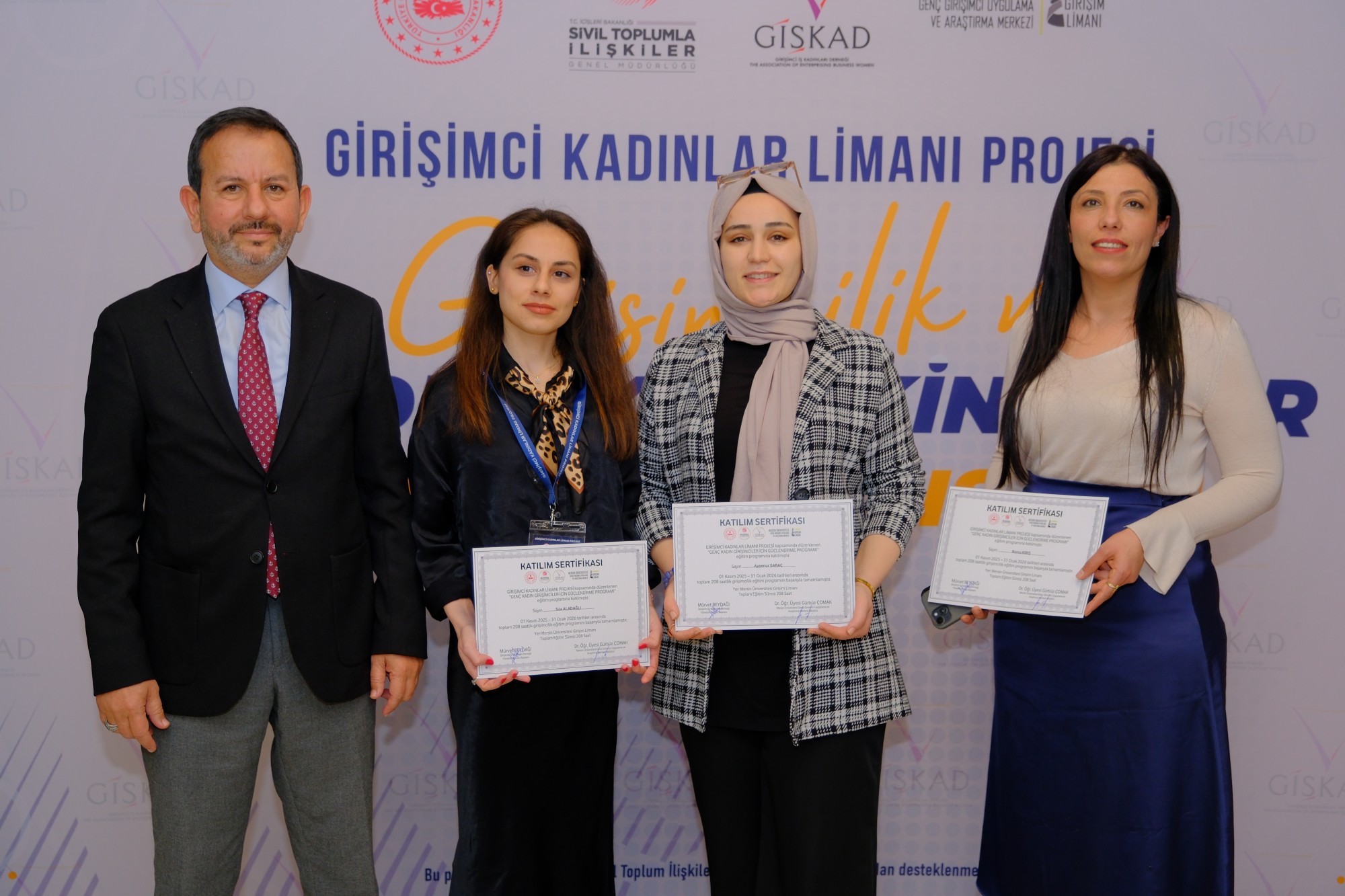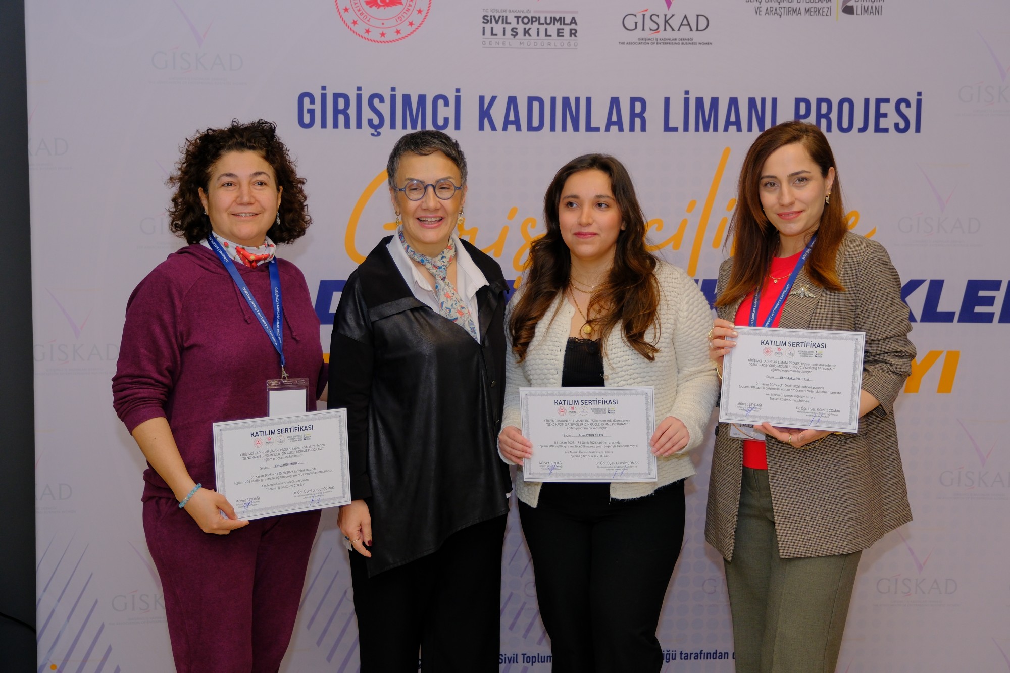 İçişleri Bakanlığı Sivil Toplumla İlişkiler Genel Müdürlüğü destekleriyle, GİŞKAD ve Girişim Limanı iş birliğinde, Girişim Limanı ev sahipliğinde gerçekleştirilen Girişimcilik ve Akademik Yetkinlikler Panel ve Çalıştayı kapsamında düzenlenen eğitimlerin sonunda katılımcılarımıza katılım belgeleri takdim edilmiştir.