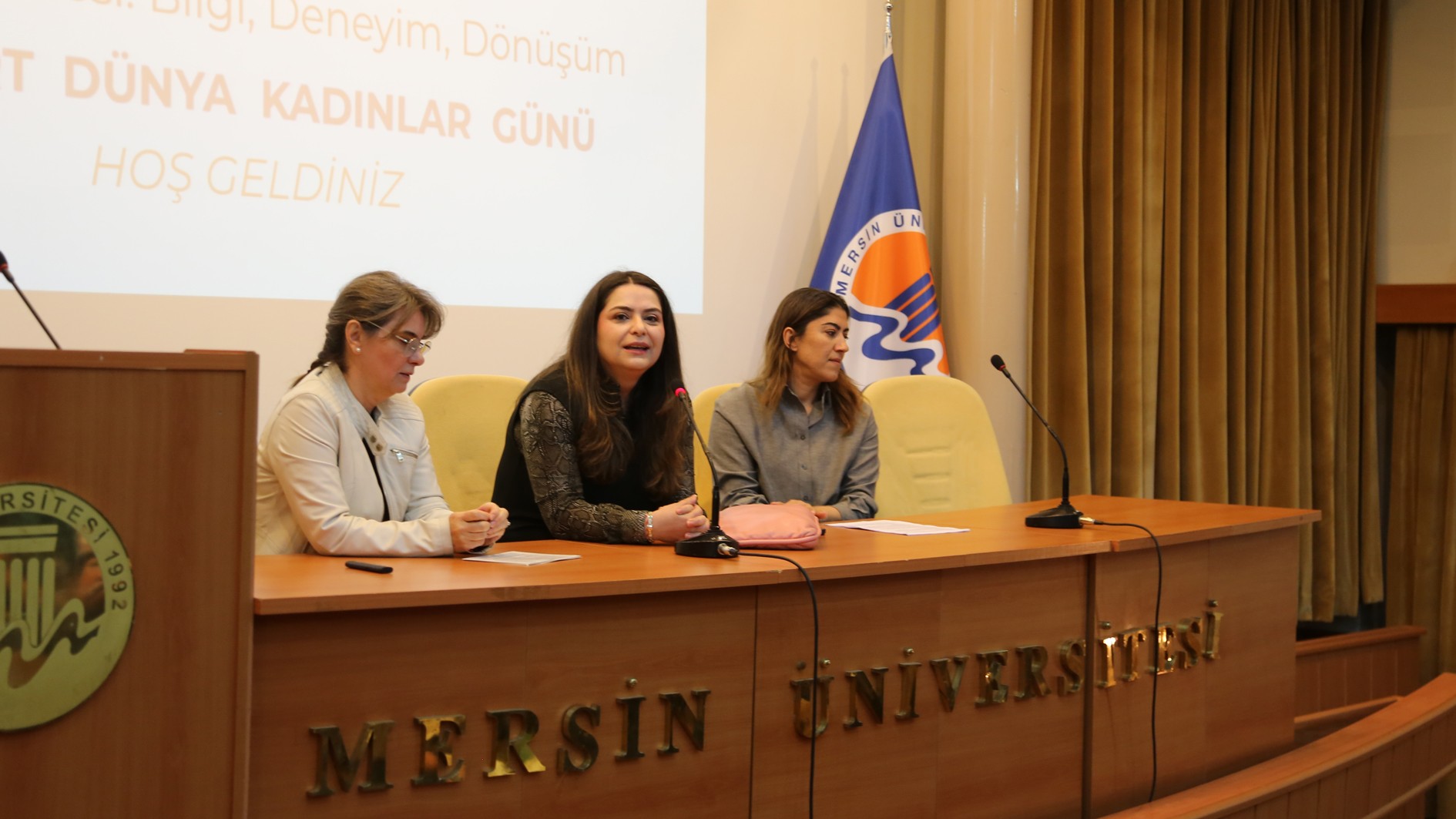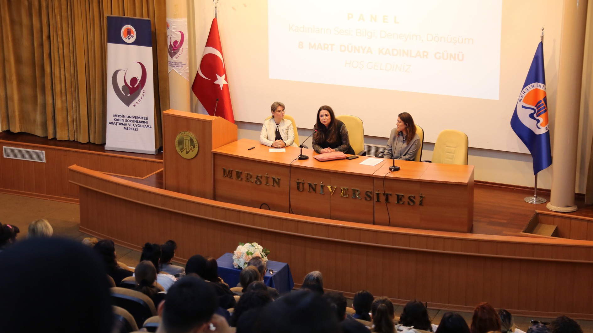 Üniversitemiz Kadın Sorunları Uygulama ve Araştırma Merkezi (MERKAM) tarafından 8 Mart Dünya Kadınlar Günü kapsamında düzenlenen "Kadınların Sesi: Bilgi, Deneyim ve Dönüşüm" başlıklı panel, akademisyenlerimizin ve öğrencilerimizin yoğun katılımıyla gerçekleştirildi.