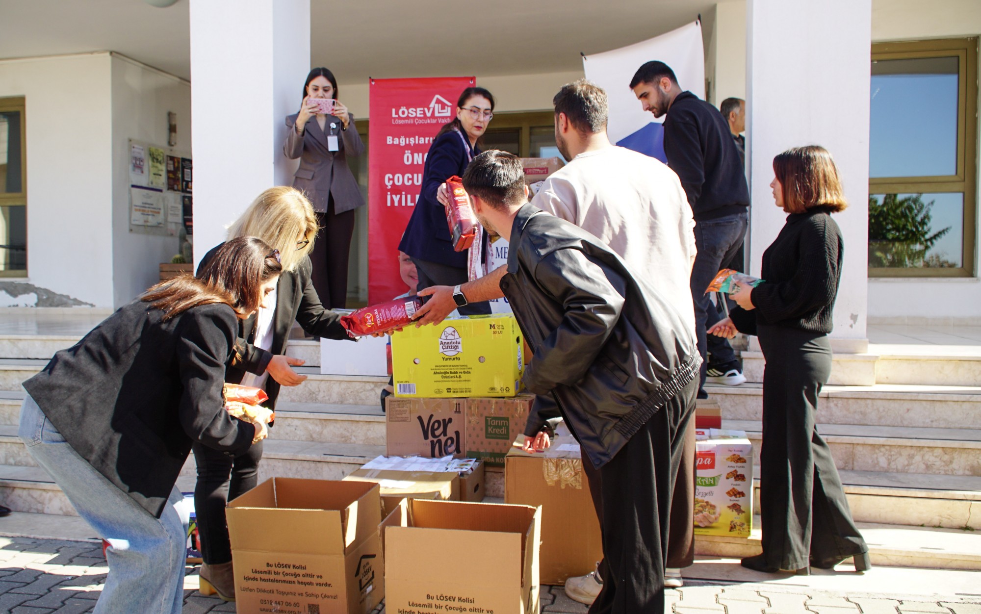 Mersin Üniversitesi Bilinçli Gençler Topluluğu ile LÖSEV iş birliğinde gerçekleştirilen kampanya çerçevesinde fakülte önünde kurulan stantlarda akademik ve idari personel ile öğrenciler tarafından çeşitli gıda ürünleri bağışlandı. Toplanan bulgur, pirinç, makarna, bakliyat, sıvı yağ ve benzeri temel ihtiyaç malzemeleri bugün koliler haline getirilerek LÖSEV yetkililerine teslim edildi. Bağışlar, lösemili çocuklar ve ailelerine ulaştırılmak üzere ilgili birimlere gönderilecek.