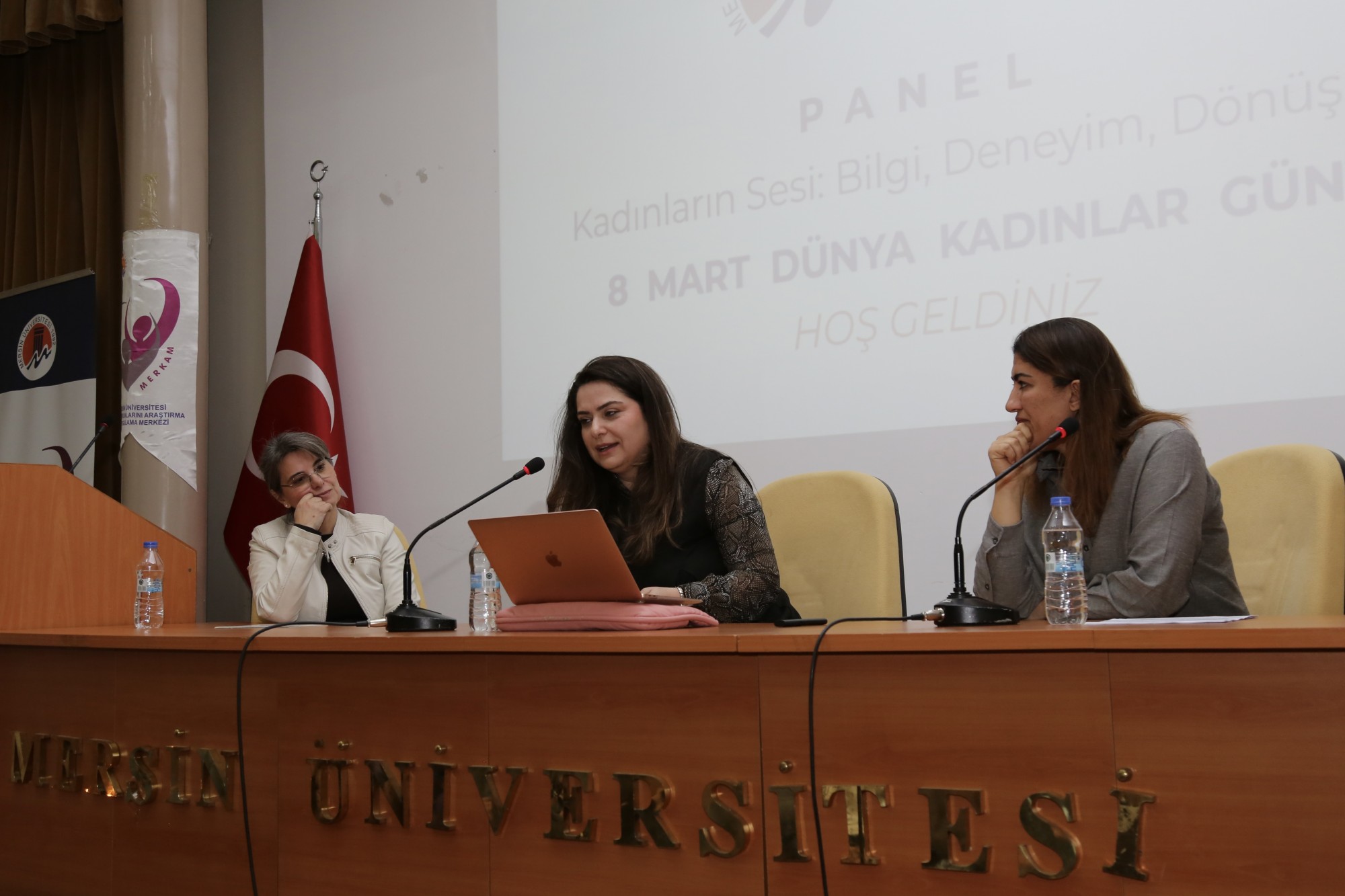 Mersin Üniversitesi Kadın Sorunları Araştırma ve Uygulama Merkezi tarafından 8 Mart Dünya Kadınlar Günü etkinlikleri kapsamında düzenlenen “Kadınların Sesi: Bilgi, Deneyim ve Dönüşüm” başlıklı panel, 10 Mart 2026 Salı günü saat 10.15’te gerçekleşti. Etkinlik, Mersin Üniversitesi yerleşkesinde bulunan Prof. Dr. Uğur Oral Kültür Merkezi C Salonu’nda yapıldı.