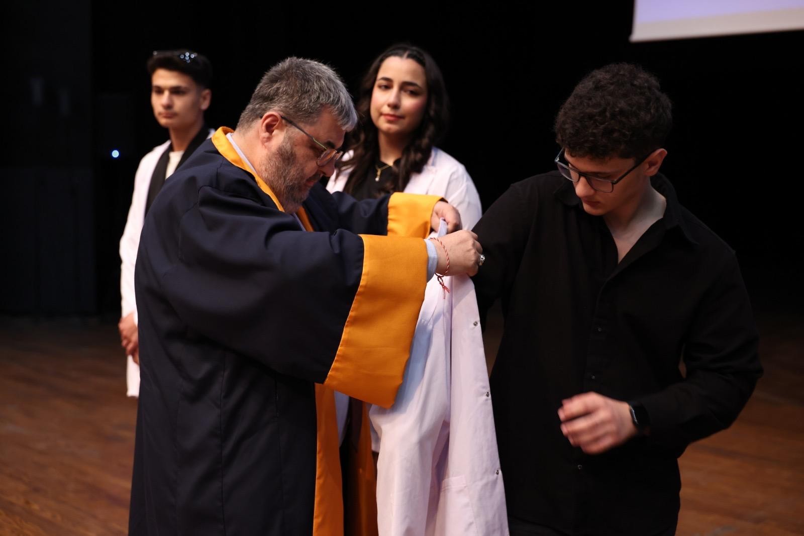 Dekanımız Prof. Dr. İlhan Ege, 14 Mart Tıp Bayramı kapsamında Tıp Fakültemiz tarafından düzenlenen Beyaz Önlük Töreni'ne katıldı. Törende, Rektörümüz Prof. Dr. Erol Yaşar ile birlikte doktor adaylarına beyaz önlüklerini giydirerek bu anlamlı günün heyecanını paylaştı. Tören, Tıp Fakültesi 1. sınıf öğrencilerine beyaz önlüklerinin giydirilmesi ve sonrasında toplu fotoğraf çekimi ile sona erdi.