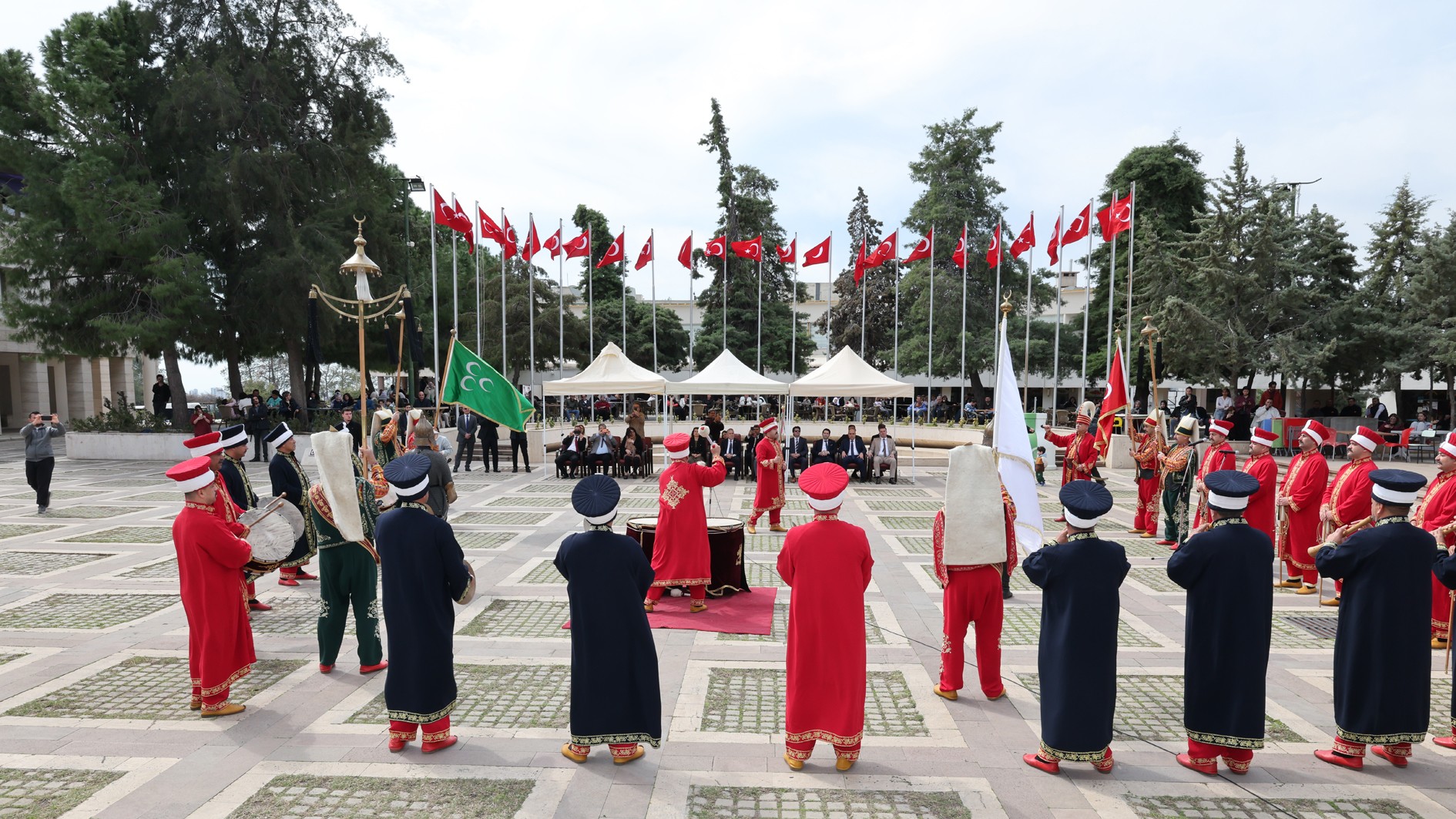 Osmaniye Belediyesi Mehter Takımı’nın büyük bir ustalıkla seslendirdiği tarihi marşlar ve kahramanlık türküleri, Cumhuriyet Alanı'nı dolduran izleyicilerden büyük alkış aldı. Milli duyguların doruğa çıktığı dinletiye, öğrencilerimiz ve personelimiz de coşkuyla eşlik etti.