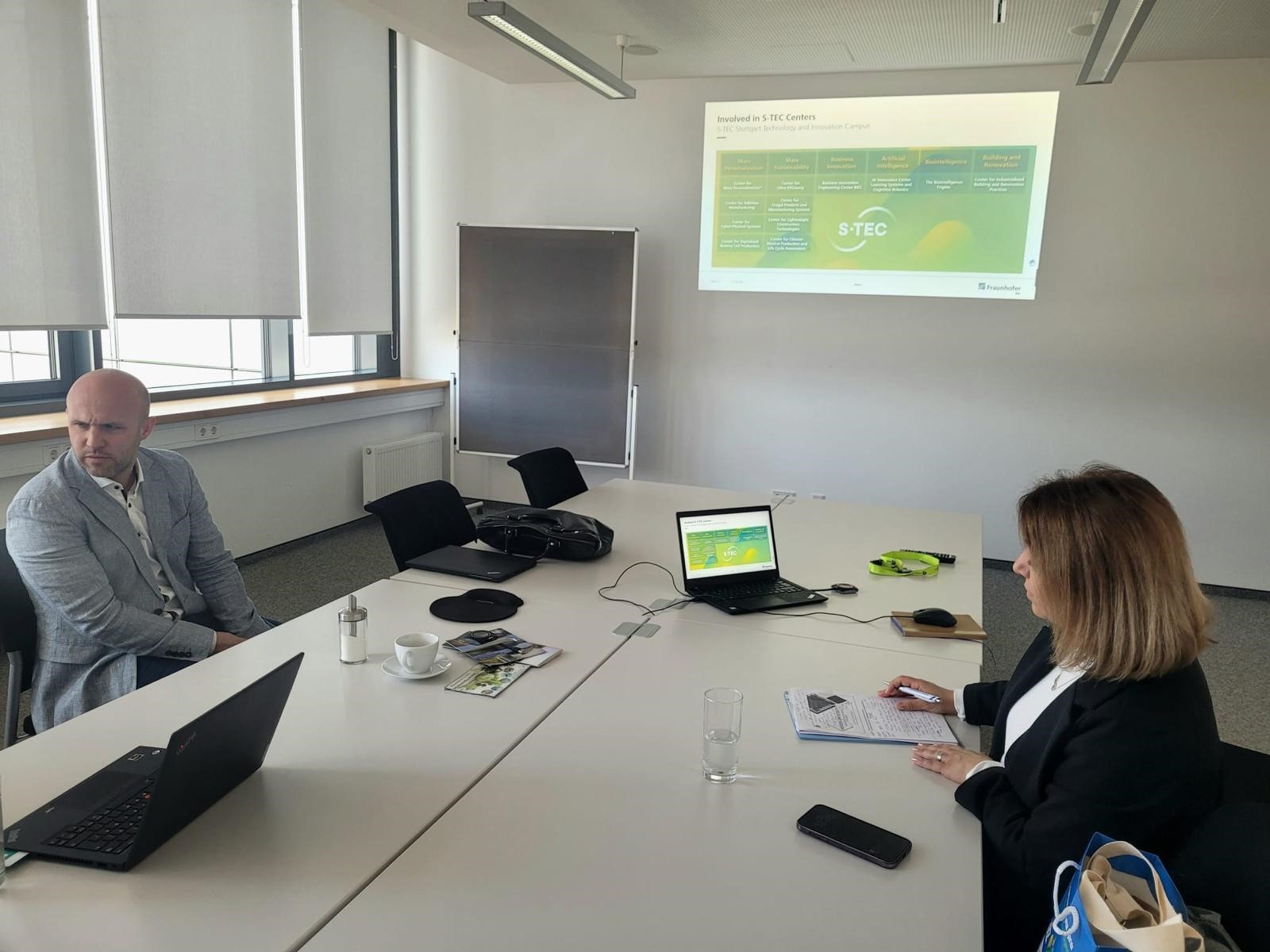 Ayrıca Fraunhofer bünyesinde gerçekleştirilen görüşmelerde, “Sürdürülebilir Değer Yaratma Sistemleri” Araştırma Bölümü Başkanı Dr. Robert Miehe ve Araştırma Stratejisi Başkan Yardımcısı Dilay Kesten Erhart, Sürdürülebilirlik ve Malzeme Uygunluk Yönetimi Bölümü araştırmacısı Raphaela Camargo Garcia ile görüş alışverişinde bulunuldu.