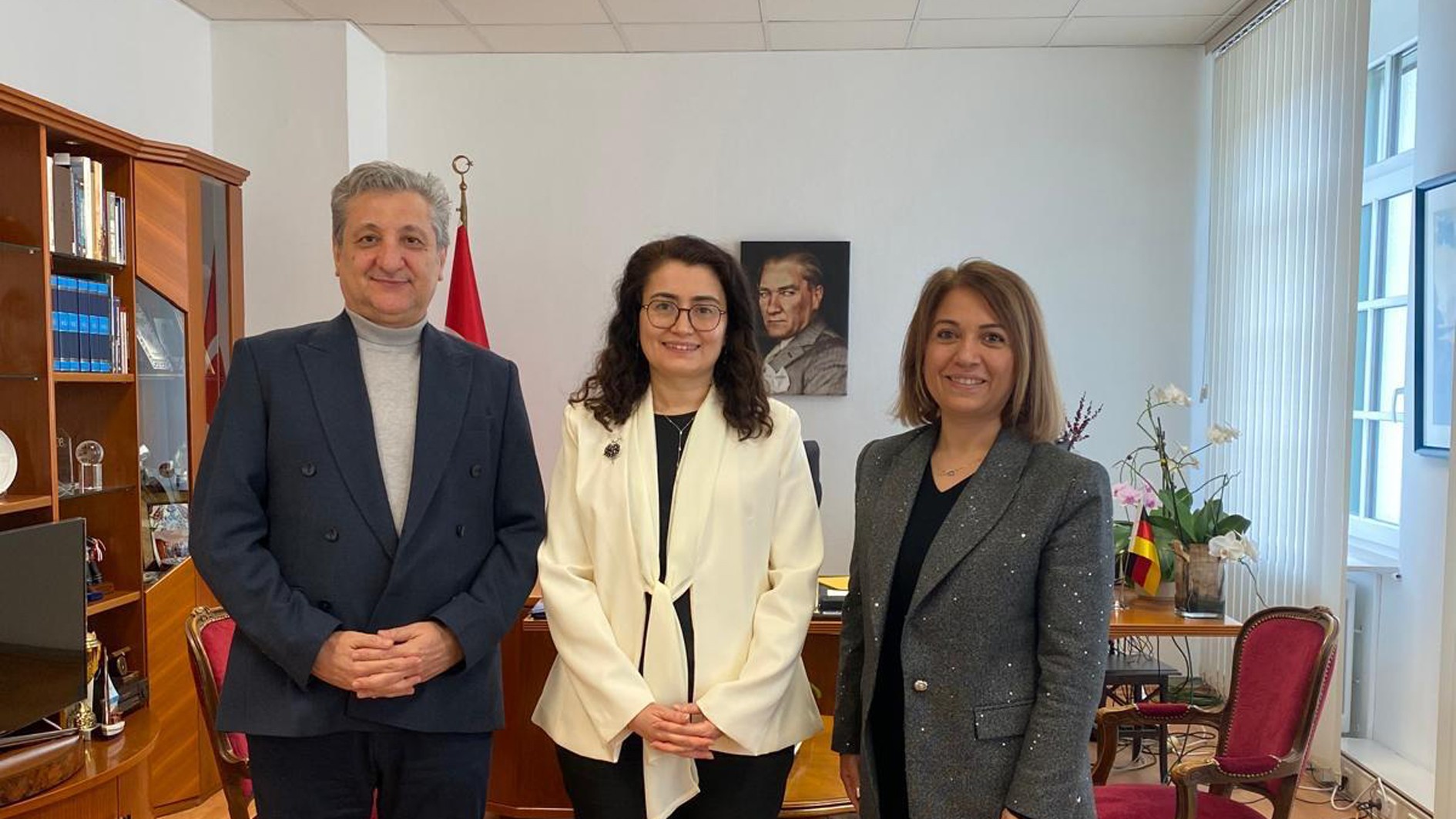 Ziyaret programı çerçevesinde, T.C. Stuttgart Başkonsolosu Makbule Koçak Kaçar ve Eğitim Ataşesi Prof. Dr. Ali Değirmendereli ile bir araya gelindi. Görüşmede; yükseköğretimde uluslararasılaşma, Türkiye ile Almanya arasındaki akademik iş birliği olanakları ve Erasmus staj programları üzerine kapsamlı değerlendirmelerde bulunuldu.