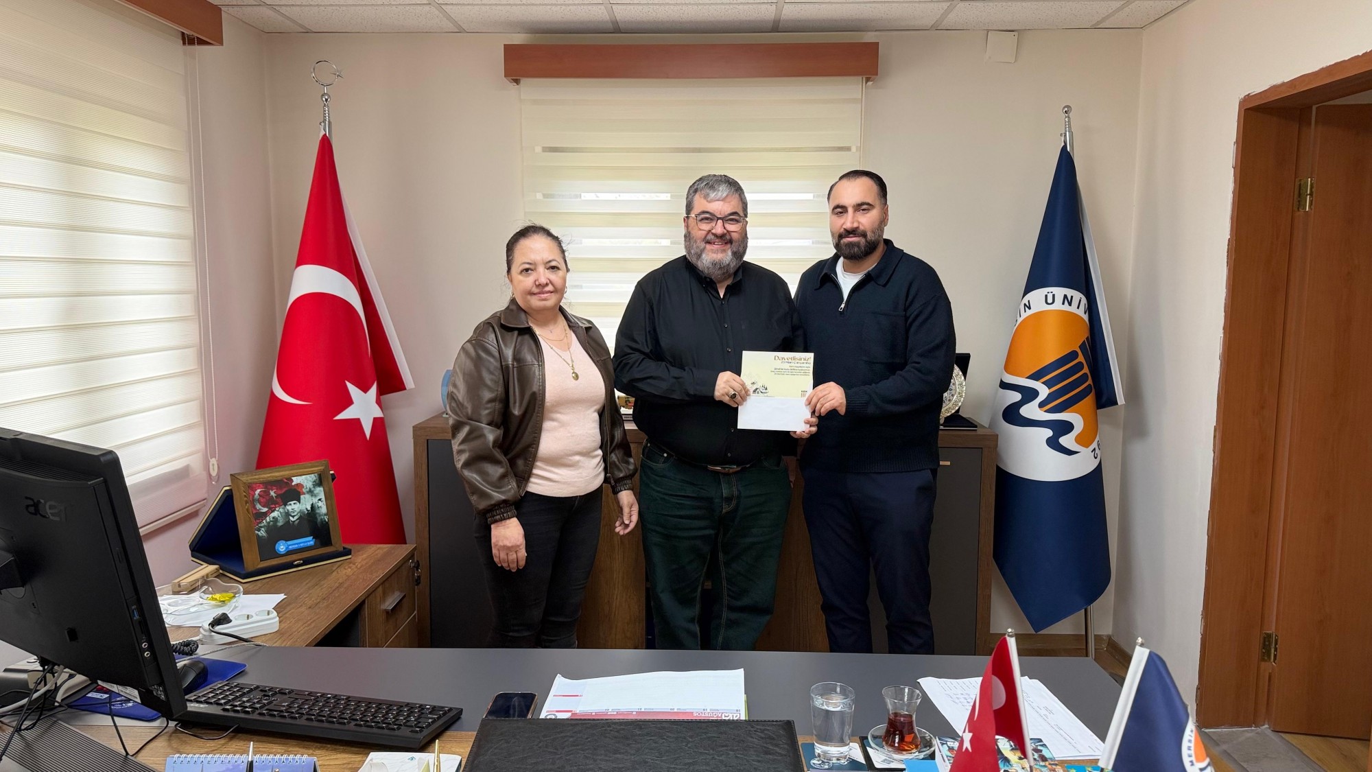 Yönetim Danışmanı Binnur Yetik ve Ken's Restoran sahibi girişimci Gökhan Göktaş, fakültemiz Dekanı Prof. Dr. İlhan Ege’yi makamında ziyaret etti. Gerçekleştirilen ziyarette üniversite–sektör iş birlikleri, girişimcilik ekosistemi ve öğrencilerin kariyer gelişimine yönelik olası çalışmalar hakkında görüş alışverişinde bulunuldu. Ayrıca Ken’s restoran açılışına davet ettiler. Nazik ziyaretlerinden dolayı Binnur Yetik ve Gökhan Göktaş’a teşekkür ederiz.