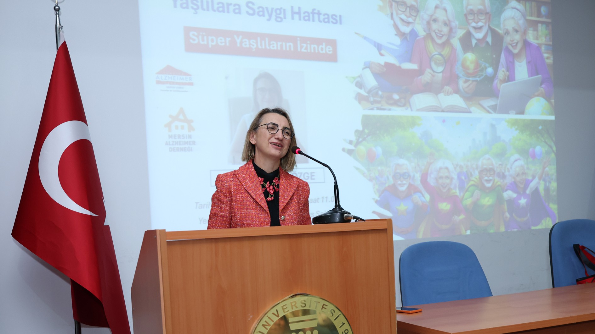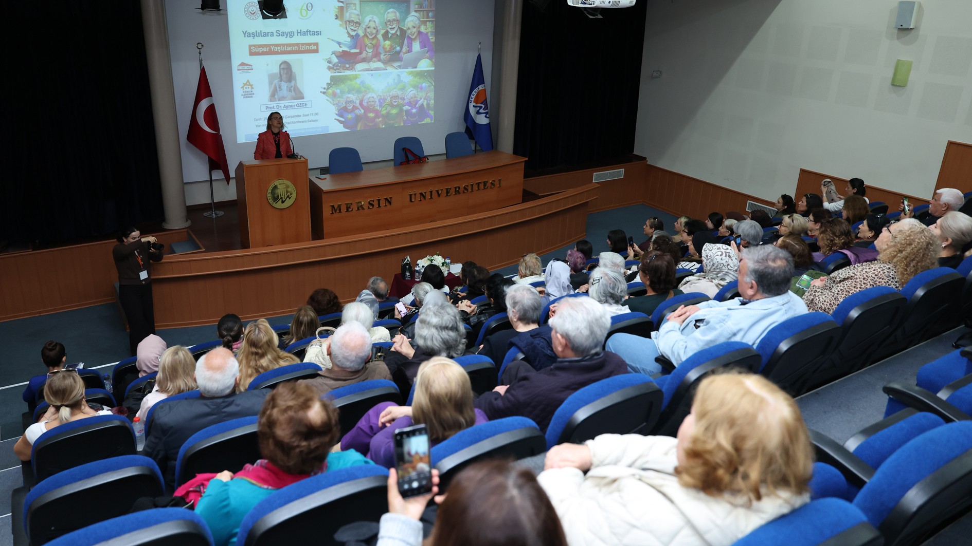Üniversitemiz Prof. Dr. Uğur Oral Konferans Salonu'nda gerçekleştirilen etkinliğe; Hemşirelik Fakültesi Dekanı ve Yaşlılık Çalışmaları Koordinatörü Prof. Dr. Duygu Vefikuluçay Yılmaz, Prof. Dr. Aynur Özge, Hemşirelik Fakültesi Dekan Yardımcısı Doç. Dr. Tuba Güner Emül, Mersin Gündüzlü Bakım ve Aktif Yaşam Merkezi Müdürü Mustafa Sarı ve 60+ Tazelenme Üniversitesi öğrencileri katıldı.