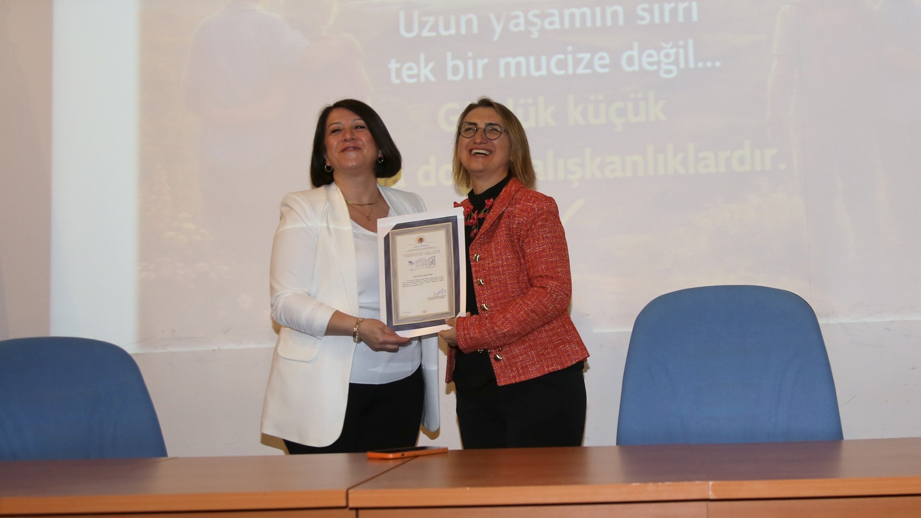 Konferans, Prof. Dr. Duygu Vefikuluçay Yılmaz'ın Prof. Dr. Aynur Özge'ye teşekkür belgesi takdim etmesiyle sona erdi.