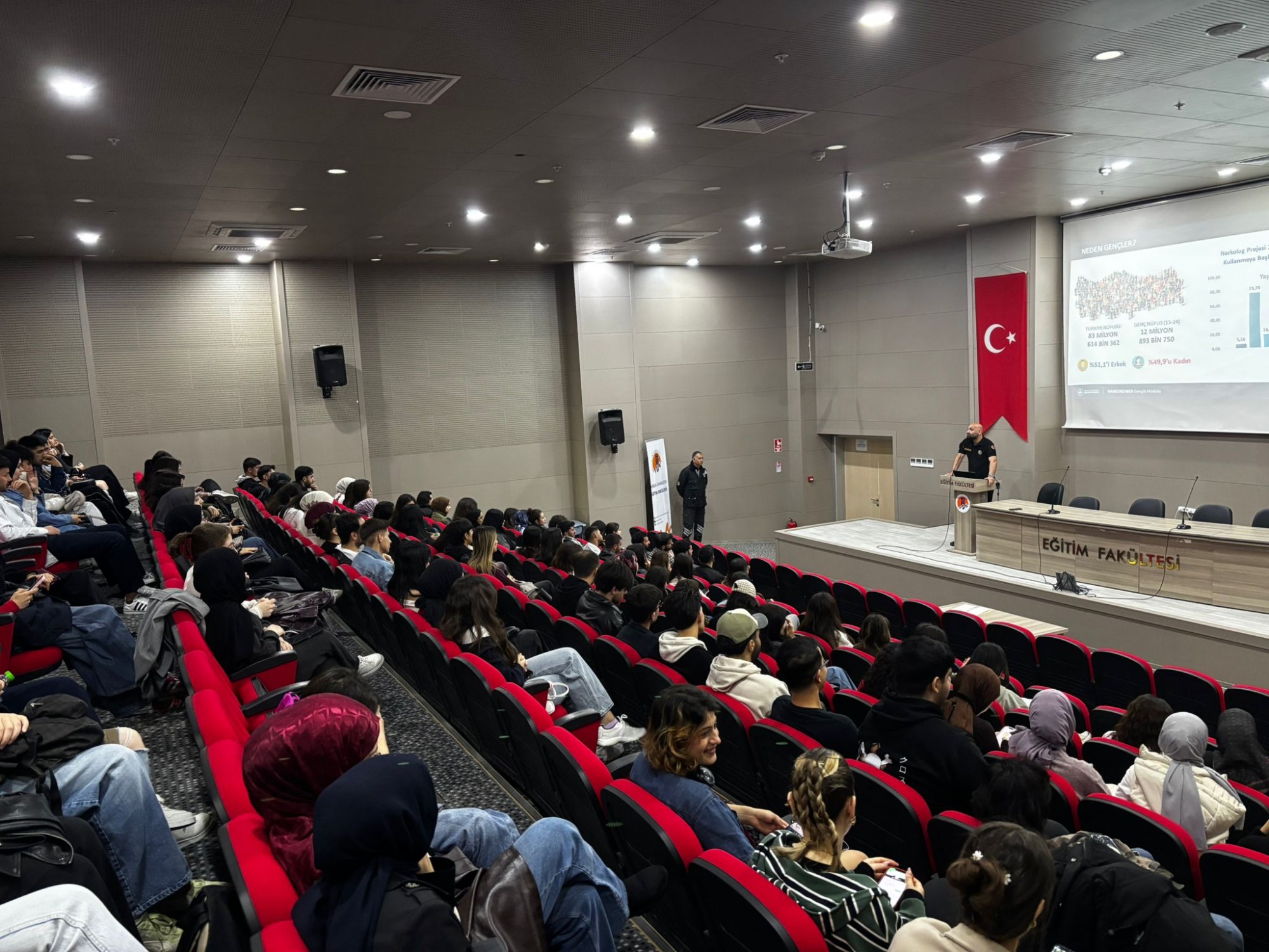 Fakültemiz öğrenci ve personeline yönelik olarak Prof. Dr. Ahmet Çamsarı Konferans Salonunda 25 Mart 2026 Çarşamba günü "Enİyi Narkotik Polisi Anne, Narkoyetişkin, Narkogöçmen, Gençlik Modülü Eğitimi Modülü (Narkorehber Eğitimleri) kapsamında UYUMA-NARGAS" tanıtım faaliyeti ve Eğitimi düzenlenmiştir.