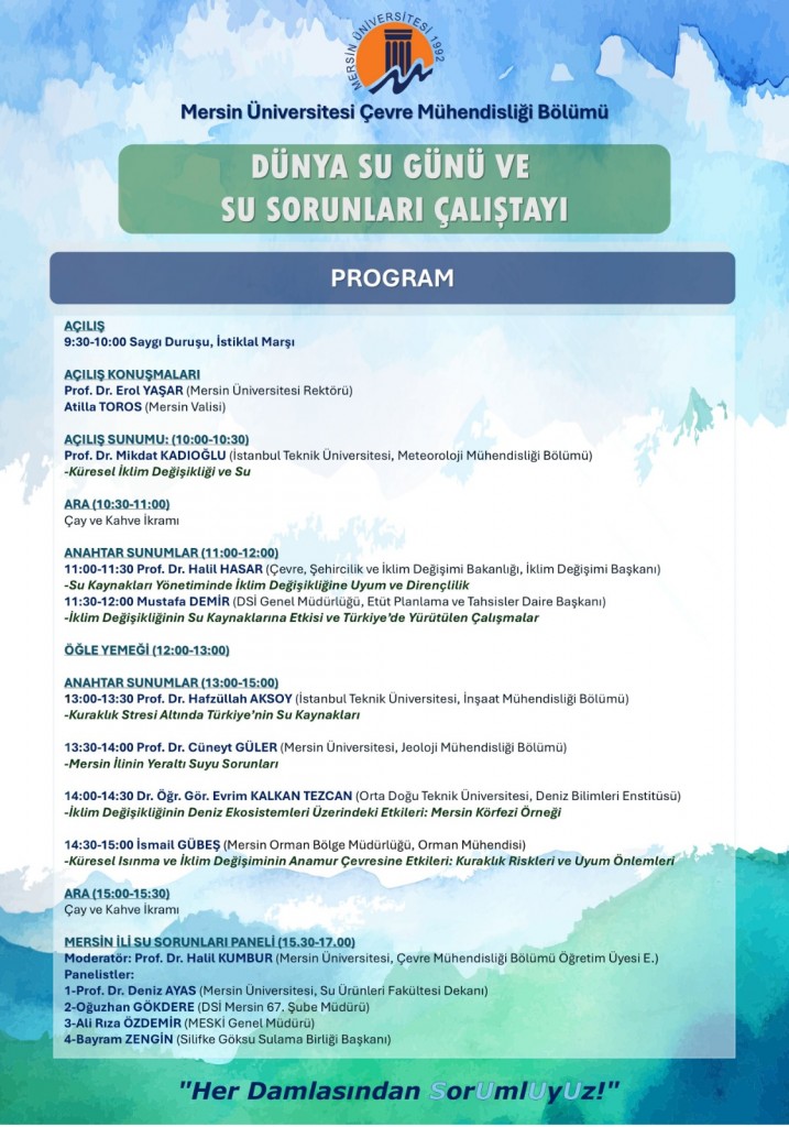 Dünya Su Günü ve Su Sorunları Çalıştayı Programına
