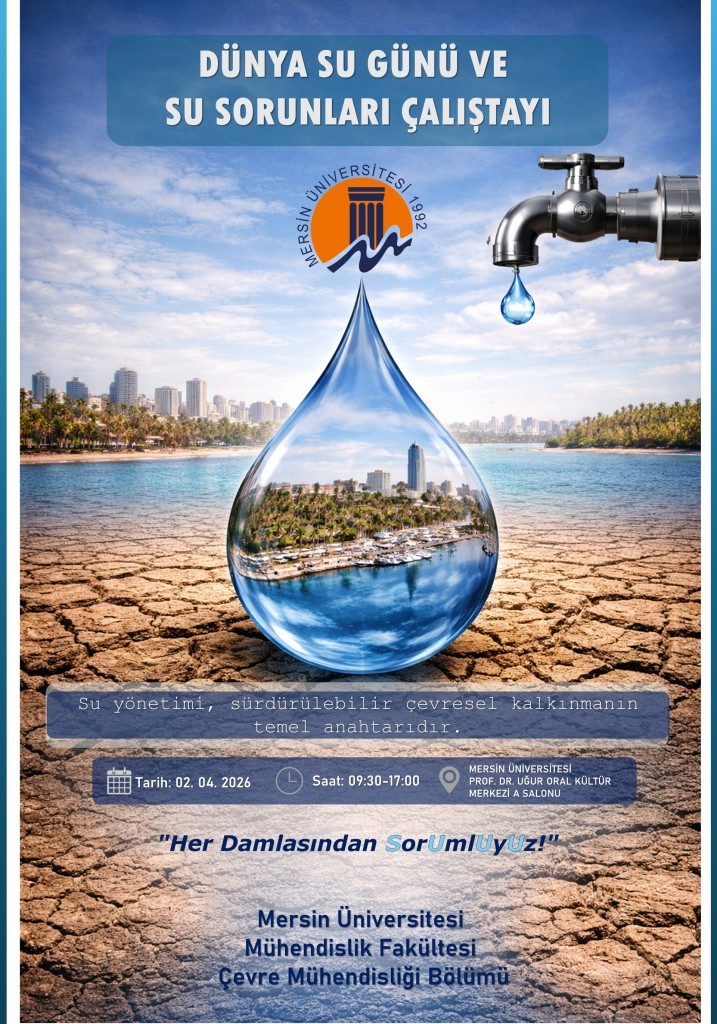 Fakültemiz Çevre Mühendisliği Bölümü tarafından 02 Nisan 2026 tarihinde Prof. Dr. Uğur ORAL Kültür Merkezi A salonunda “Dünya Su Günü ve Su Sorunları Çalıştayı” düzenlenecektir.