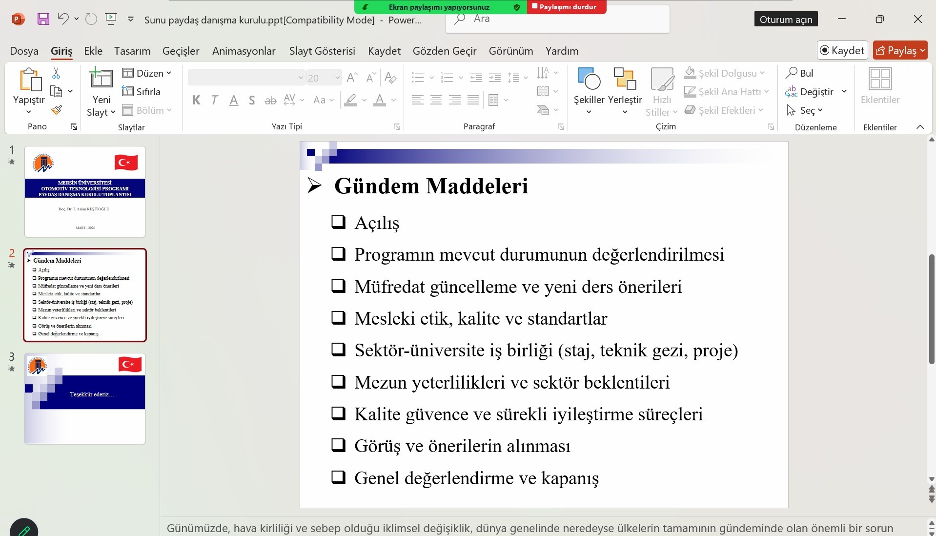 Toplantıda ayrıca, öğrencilerin sektöre daha donanımlı hazırlanabilmesi amacıyla; mesleki etik, kalite güvence sistemleri ve ulusal/uluslararası standartların eğitim süreçlerine daha fazla entegre edilmesi gerektiği vurgulandı.