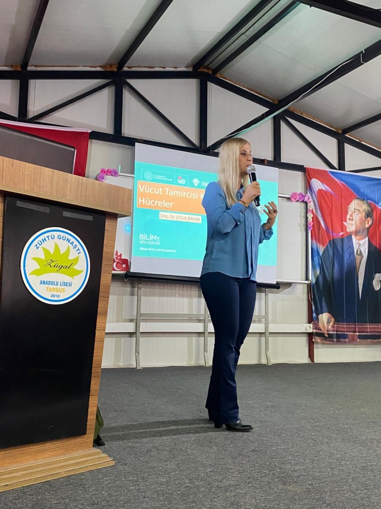“Vücut Tamircisi Kök Hücreler” başlığıyla gerçekleştirilen söyleşide, genetik ve biyoteknoloji tematik alanı kapsamında kök hücrelerin yapısı, işlevi ve güncel tıp uygulamalarındaki yeri ele alındı. Doç. Dr. Leyla Bahar, özellikle rejeneratif tıp alanındaki gelişmelerin insan sağlığı üzerindeki potansiyel etkilerini bilimsel veriler ışığında öğrencilere aktardı.