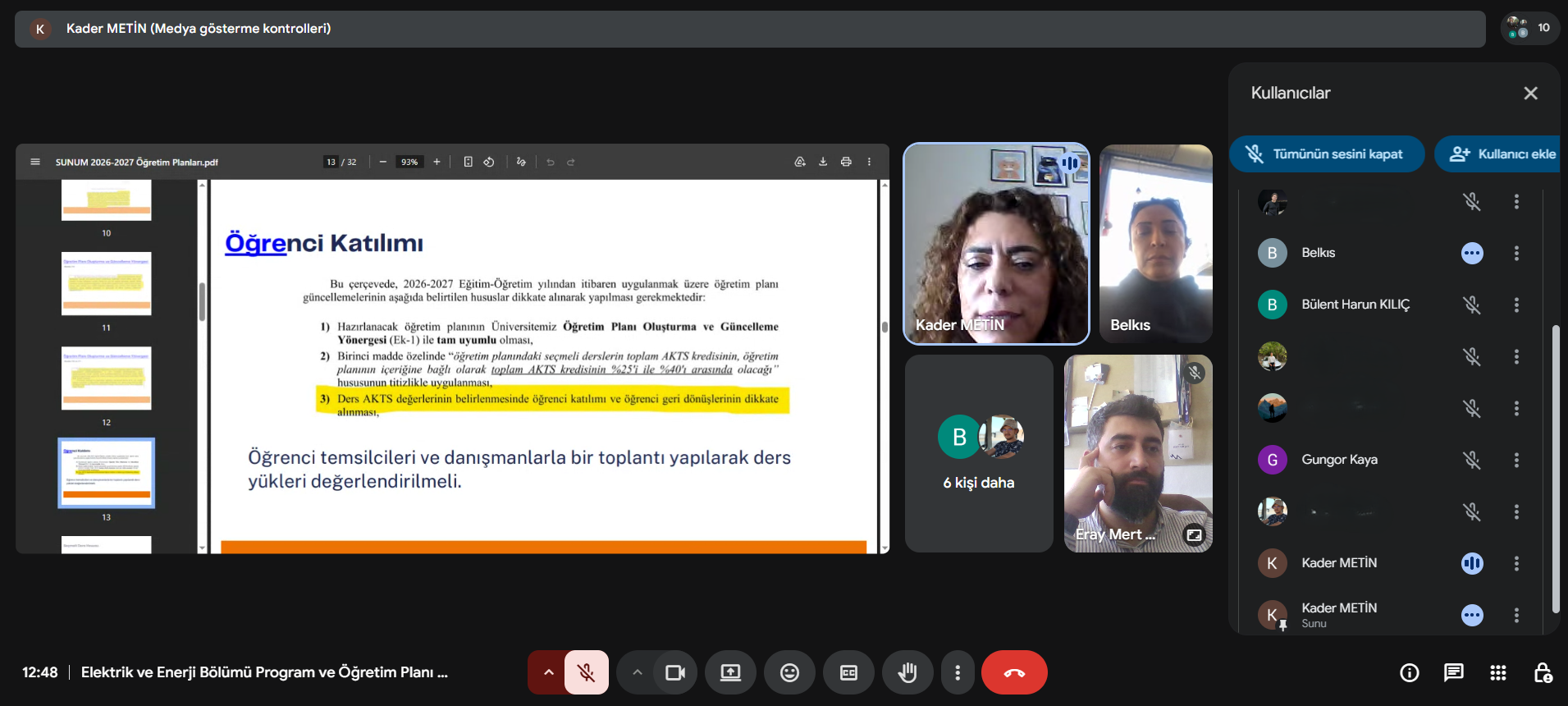 Toplantının ana gündem maddelerinden birini, öğrencilerin akademik süreçlerini doğrudan etkileyen ders yükleri oluşturdu. AKTS (Avrupa Kredi Transfer Sistemi) kredilerinin, derslerin gerçek iş yüküyle olan uyumu titizlikle değerlendirildi. Öğrencilerin öğrenme süreçlerini optimize etmek amacıyla şu konular üzerinde duruldu: