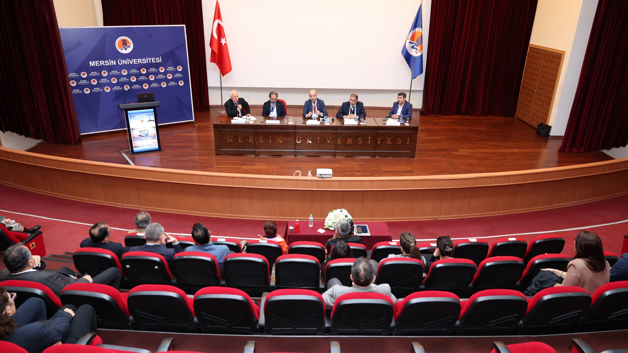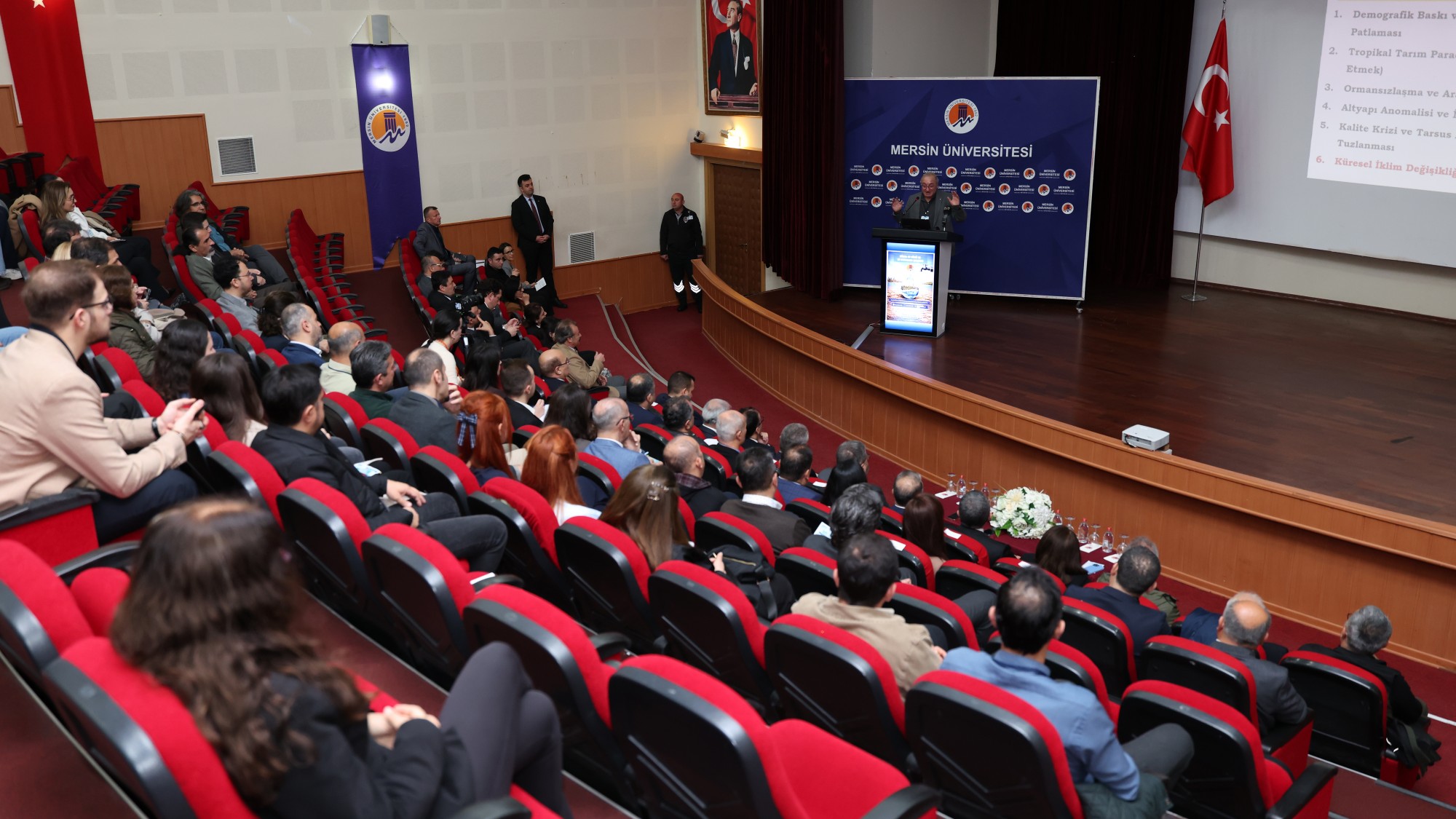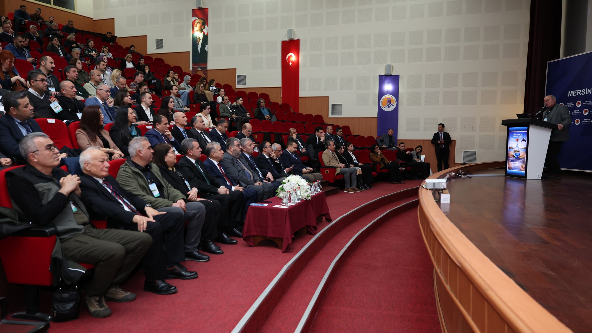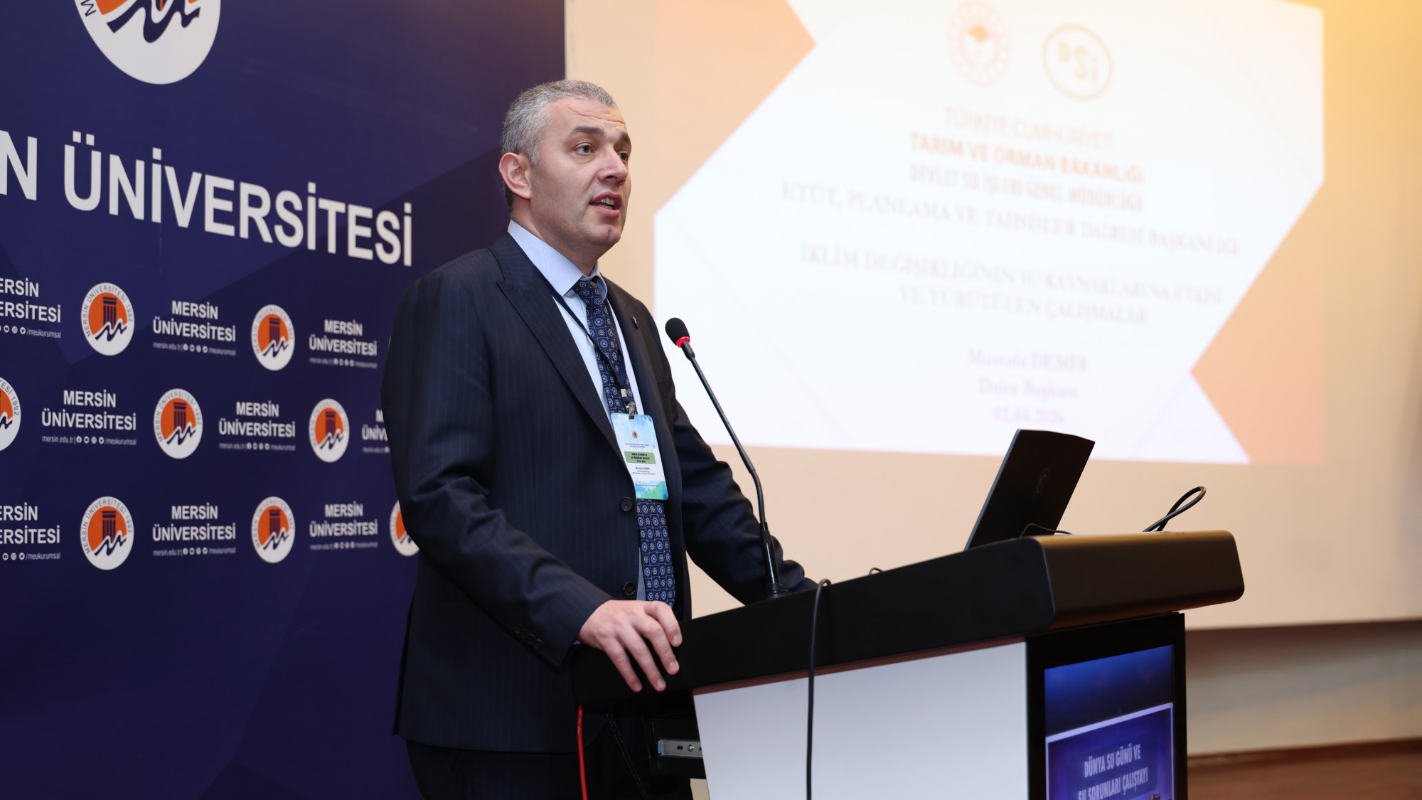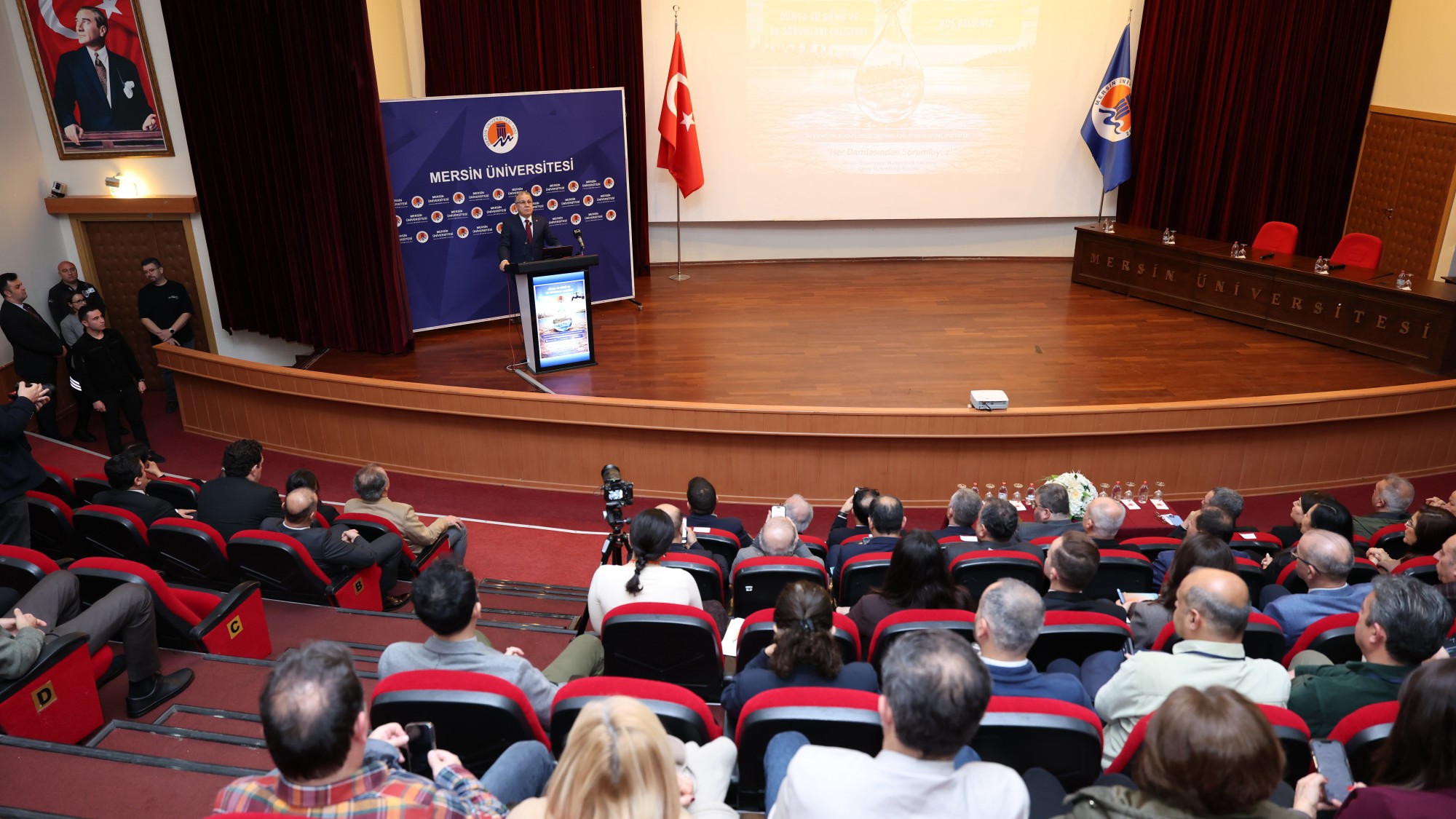 “Her Damlasından Sorumluyuz!" mottosuyla düzenlenen ve su yönetiminin sürdürülebilir çevresel kalkınmadaki rolünün ele alındığı programa; Rektörümüz Prof. Dr. Erol Yaşar, Çevre, Şehircilik ve İklim Değişimi Bakanlığı İklim Değişimi Başkanı Prof. Dr. Halil Hasar, DSİ Genel Müdürlüğü Etüt Planlama ve Tahsisler Daire Başkanı Mustafa Demir, Rektör Danışmanımız Prof. Dr. İlhan Ege, Mühendislik Fakültesi Dekanımız ve Rektör Danışmanımız Prof. Dr. Ayla Özer, MESKİ Genel Müdürü Ali Rıza Özdemir, Mersin Sulama Birliği Başkanı Oktay Temizsoy, DSİ Mersin 67. Şube Müdürü Oğuzhan Gökdere ile çok sayıda akademisyen, kurum temsilcisi ve öğrenci katıldı.