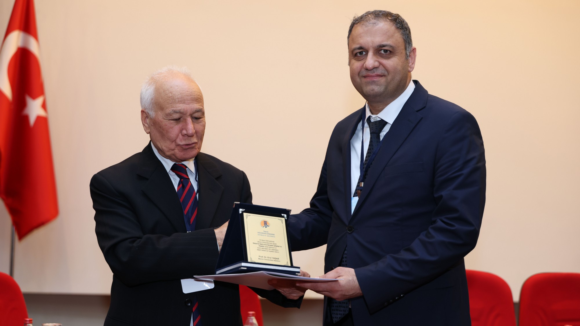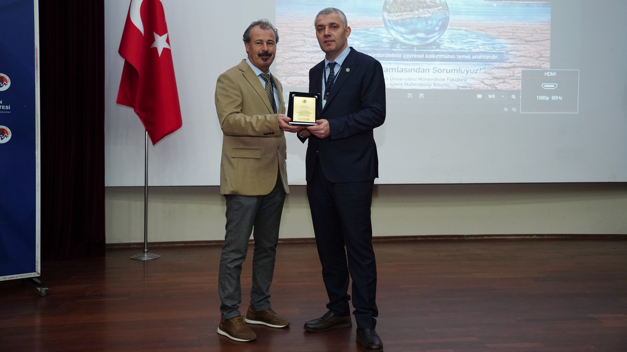 Açış konuşmasının ardından çalıştayın ilk sunumunu, "Küresel İklim Değişikliği ve Su" başlıklı konuşmasıyla İstanbul Teknik Üniversitesi (İTÜ) Meteoroloji Mühendisliği Bölümünden Prof. Dr. Mikdat Kadıoğlu gerçekleştirdi. Sunumun ardından Rektörümüz Prof. Dr. Erol Yaşar tarafından Prof. Dr. Kadıoğlu’na plaket takdim edildi.