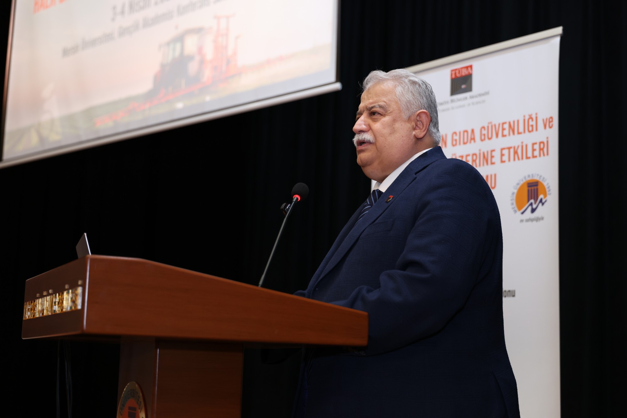 Sempozyumun açılışında söz alan TÜBA Başkanı Prof. Dr. Muzaffer Şeker, gıda güvenliği ve sağlıklı gıdaya erişimin küresel ölçekte en stratejik meselelerden biri hâline geldiğini belirtti. Türkiye Bilimler Akademisi olarak halk sağlığını doğrudan ilgilendiren bu tür hayati konularda bilimsel temelli politikaların üretilmesine büyük önem verdiklerini vurgulayan Prof. Dr. Şeker, tarımsal üretimde pestisit kullanımının disiplinler arası bir yaklaşımla ele alınmasının zorunluluk olduğunu ifade etti. Etkinlik sonucunda ortaya çıkacak bilimsel raporların ve çok yönlü değerlendirmelerin karar alıcılara önemli bir rehber olacağının altını çizen Şeker, böylesine değerli bir organizasyona başarıyla ev sahipliği yapan Üniversitemize ve Rektörümüz Prof. Dr. Erol Yaşar ile sempozyuma katkı sunan tüm bilim insanlarına teşekkürlerini iletti.